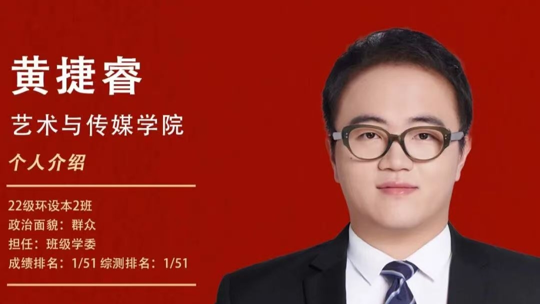 “获得国奖我倍感荣幸,这是对过往努力的认可,感恩学校与老师的一路支持。未来我会以此为动力,深耕专业,稳步前行。”在谈到获得国家奖学金的感受时,2022级环境设计专业黄捷睿感慨到。