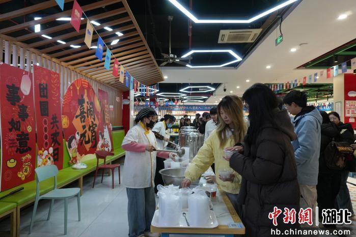 中新网湖北新闻讯3月4日电 (叶梦婷 曾薇 邵国超)“一碗元宵,一份牵挂,能在学校吃到元宵,感觉特别幸福。”3月2日中午,武汉工程科技学院网络与新媒体专业学生左青杰从食堂阿姨手中接过热气腾腾的元宵,脸上满是笑意。虽然没能回家过节,但学校的这份“甜蜜”,让他感受到了家一样的温暖。