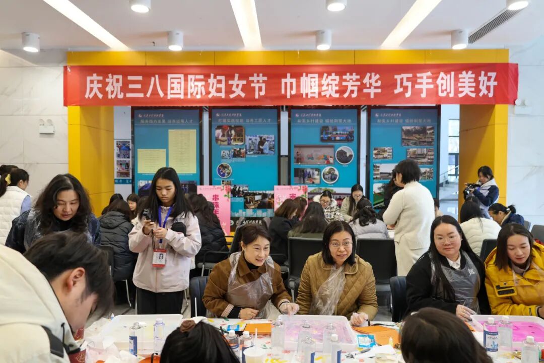 为庆祝第116个“三八”国际劳动妇女节,传递学校对女教职工的关怀与祝福,3月6日下午,武汉工程科技学院庆“三八”妇女节手作趣味活动在综合楼一楼大厅温情启幕。活动设置串珠、宋锦挂饰制作、水拓丝巾三个体验区,让女教职工们在指尖艺术中感受传统文化魅力,度过了一个充满诗意与温度的专属节日。