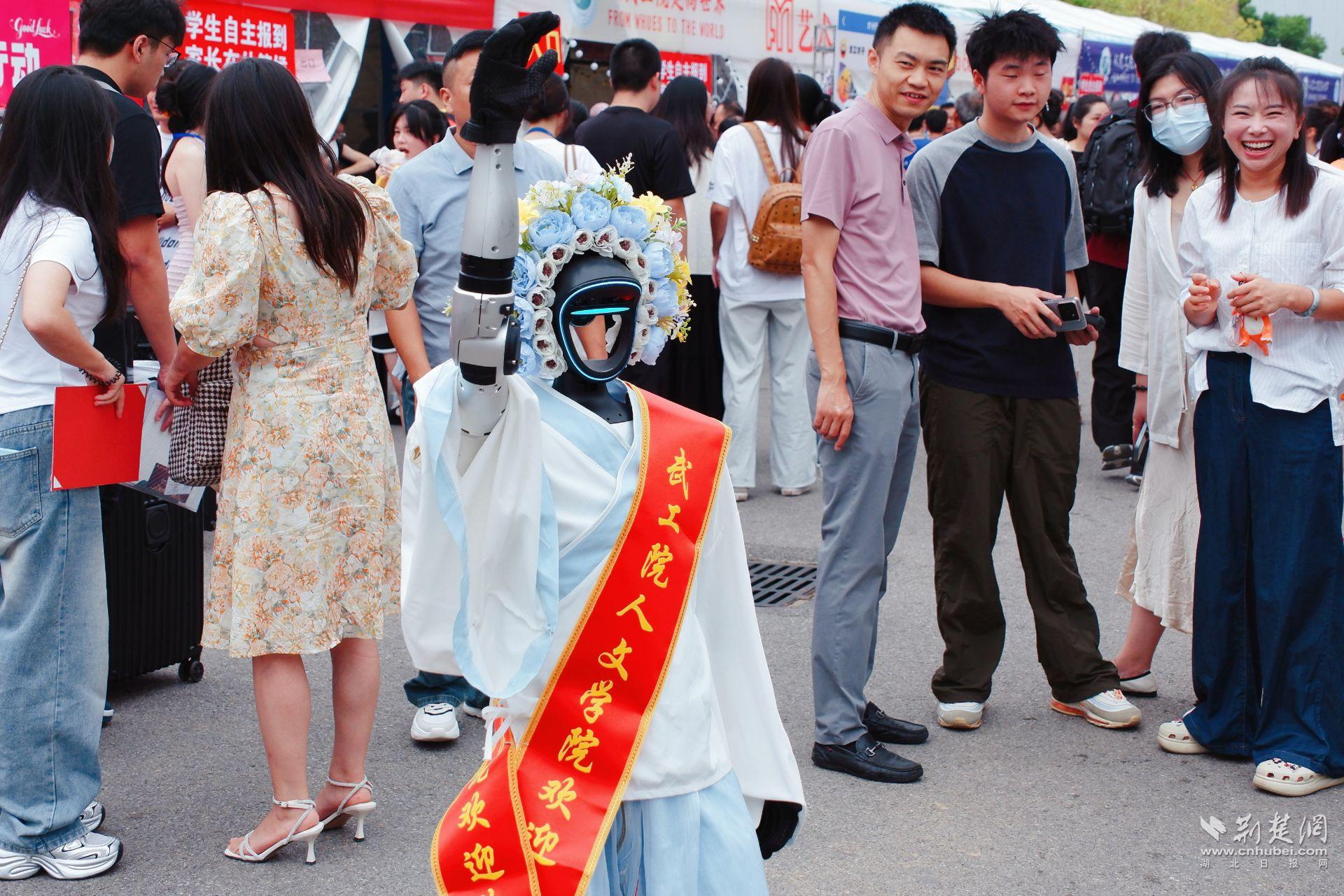 从迎新处的热情问候,到儿童区的温馨互动,再到迎新走廊的智慧引导,“小文文”用独特的方式参与校园迎新,让新生和家长在科技体验中感受到文化魅力,在细节服务中体会到校园温度。“机器人迎新”,既展现了武工院在人工智能应用上的探索创新,也体现了学校在弘扬传统文化、关怀学生成长上的独特思路。