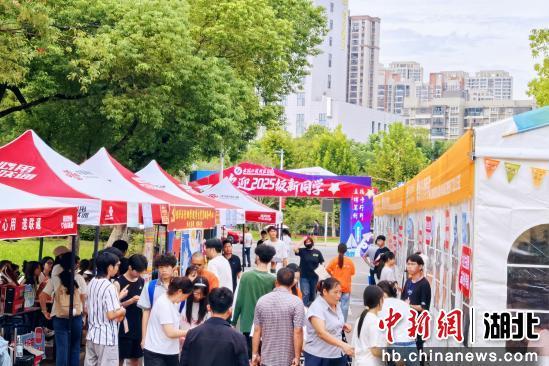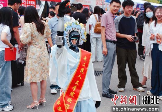 中新网湖北讯 中新网湖北新闻9月10日电 (叶梦婷 杨静宜)武汉工程科技学院2025级新生报到工作10日正式启动。在该校人文学院迎新现场,一款名为“小文文”的智能机器人以“特殊志愿者”身份亮相,凭借会交流、能指路、可陪娃的多功能表现,以及融合中华传统文化的独特造型,迅速成为现场焦点,引发新生及家长广泛关注。