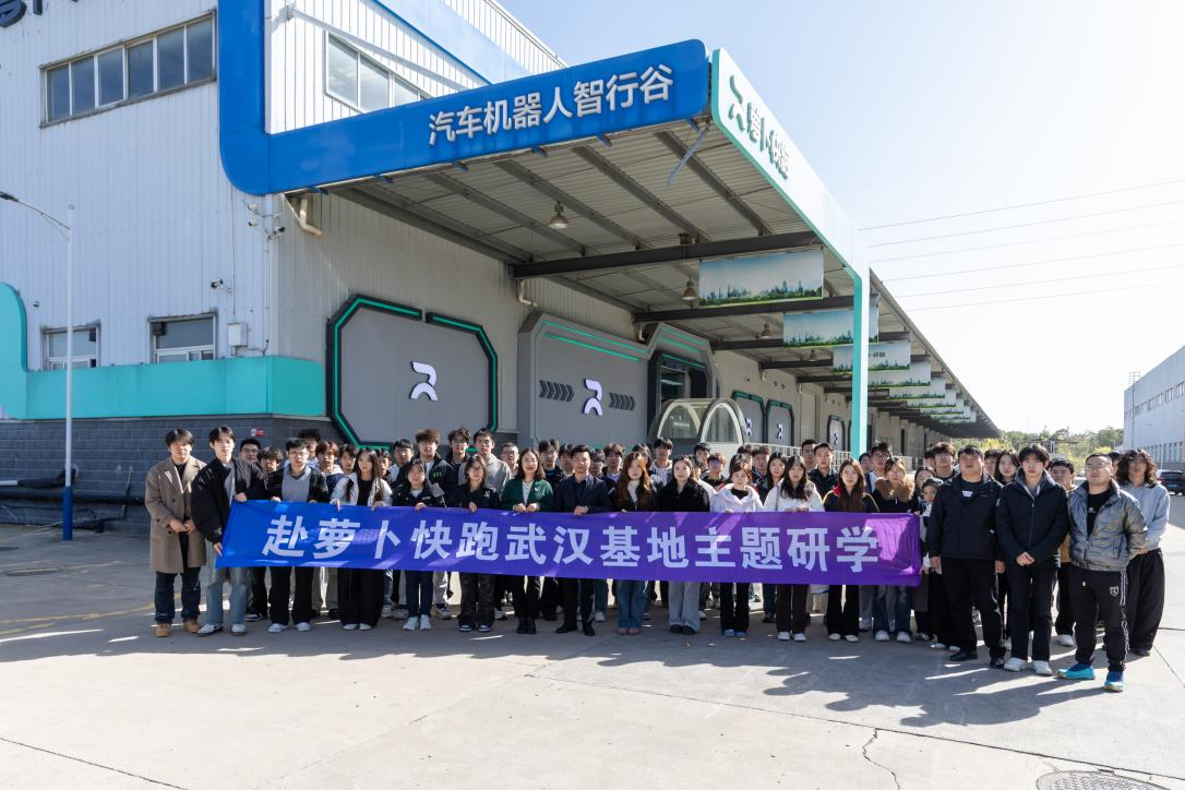 2025年11月25日,武汉工程科技学院计算机与人工智能学院组织师生代表60余人赴萝卜快跑武汉基地开展研学,该活动是“探索未来·启航人生”主题实践系列活动的第五期。本次活动聚焦自动驾驶前沿技术,通过实地参访、技术研讨与互动体验,深化产教融合