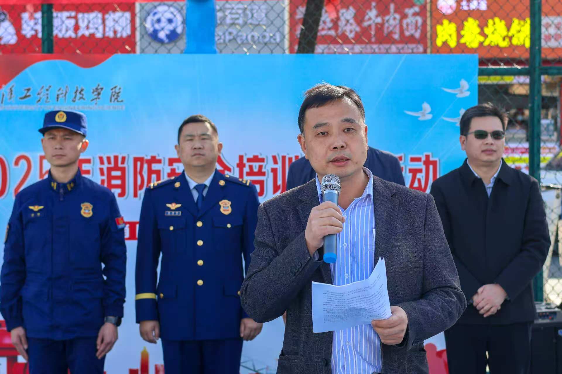 为积极做好第34个全国消防月的消防安全宣传工作,进一步筑牢校园消防安全防线,增强全校师生的消防安全意识和应急处置能力,11月26日下午,武汉工程科技学院在灯光篮球场成功举办了2025年校园安全活动月启动仪式暨消防应急演练。学校常委、校长助理