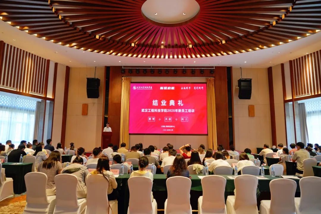 8月22日下午,武汉工程科技学院2025年“新锐启航”新入职教职工培训结业典礼在天屿湖报告厅举行,学校副董事长、党委副书记、常务副校长王加青,党委常委、校长助理胡晶晶,人事处副处长彭娟,马克思主义学院副院长高莉出席结业典礼。结业典礼由人事处