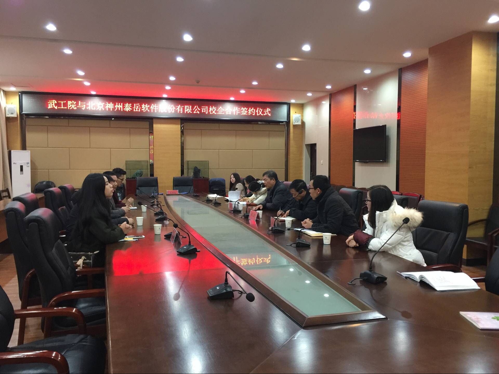 本网讯通讯员朱秀云12月21日在3教149会议室举行武工院与北京神州泰岳软件股份有限公司校企合作签约仪式该公司的总经理陈新生教学总监彭毅院校合作经理方祥祥、王安可我校楚商学院院长黄义武机械与电子信息学...