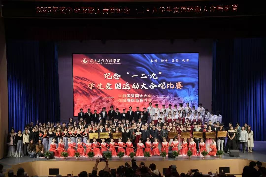 为纪念“一二·九”学生爱国运动90周年,缅怀革命先辈,弘扬民族精神,激发青年学子使命担当,12月9日晚上,武汉工程科技学院2025年奖学金表彰典礼暨纪念“一二·九”学生爱国运动大合唱比赛在新礼堂举行。学校副董事长、党委副书记、常务副校长王加