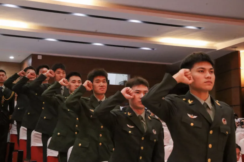 “传承红色基因示范队”宣读军人誓词,随后以激昂的歌声唱响《当那一天来临》。