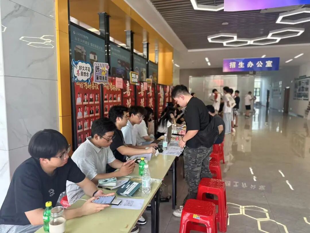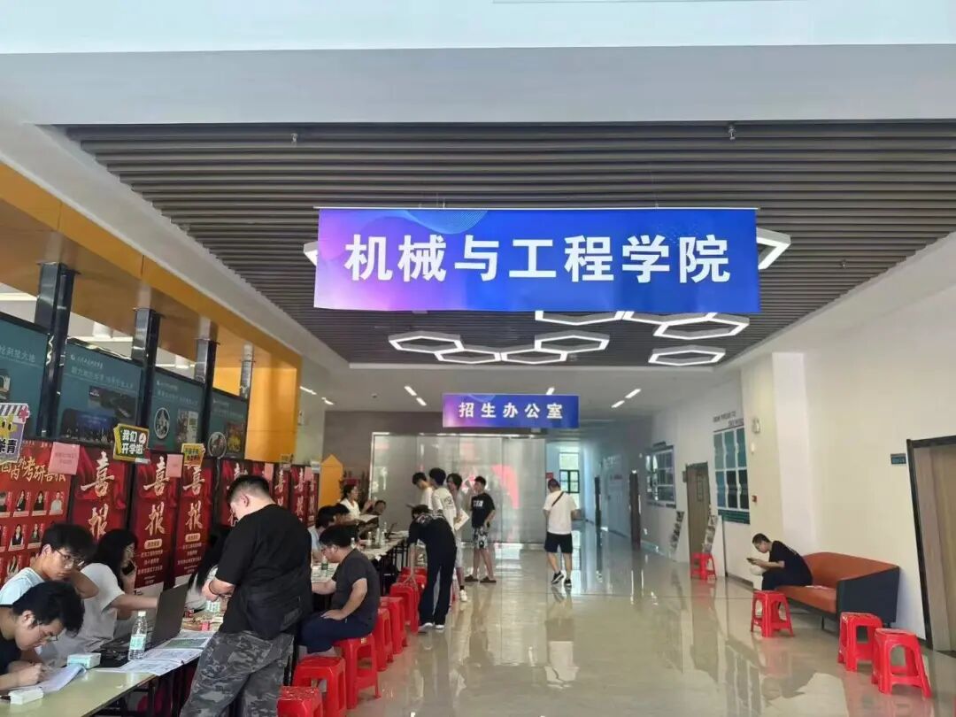 上午 8 时许,迎新现场早已是一派热闹景象。鲜艳的迎新拱门和桁架巍然矗立,“热烈欢迎2025年专升本新生入学报到!”的标语在阳光下格外醒目。校园内洋溢着热烈而温馨的迎新氛围,各报到点流程清晰、秩序井然。