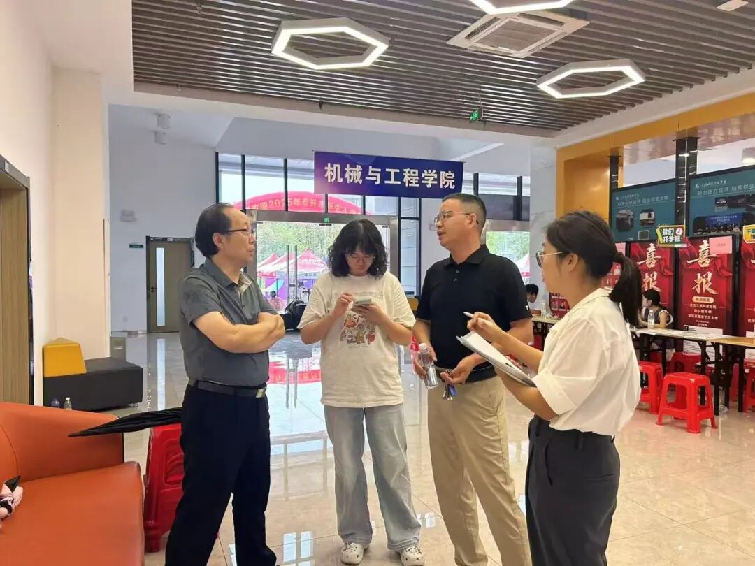 学校领导深入迎新一线,详细了解迎新进展,实地察看新生报到流程、服务保障等工作,并对各学院迎新环节进行现场指导。各学院院长、党团总支书记始终值守在迎新点,耐心解答新生疑问,亲切询问家长学生情况,并对志愿者开展实地指导,叮嘱大家以饱满的热情迎接每一位新同学,并深入2025年专升本新生宿舍走访慰问,将温暖与关怀切实传递到迎新每一个角落。