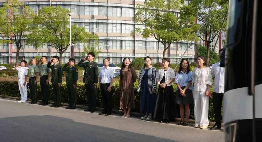 2025年9月2日上午,武汉工程科技学院在“一站式”学生社区服务中心门前举行2025年秋季应征入伍大学生欢送会。学校党委副书记、校长助理唐军国出席了活动,学生工作处、校团委、各学院相关负责人以及师生代表参加本次活动。