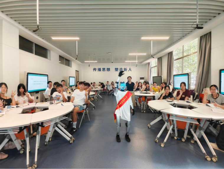 在人工智能迅猛发展的时代背景下,教育领域正迎来前所未有的变革机遇。武汉工程科技学院人文学院积极响应技术发展趋势,在利用机器人参与迎新工作之余,积极探索机器人在课堂教学中的无限可能,通过AI与教学的深度融合,打破传统课堂边界,为学生带来沉浸式、互动性强、跨学科融合的新颖学习体验。这不仅是一次教学形式上的创新,更是教育理念与科技应用相结合的重要实践。