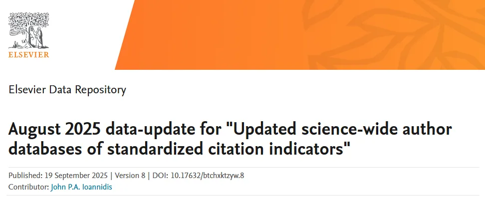 近日,斯坦福大学(Stanford University)和国际权威学术出版社爱思唯尔(Elsevier)共同公布2025年全球前2%顶尖科学家榜单(World's Top 2% Scientists)。榜单共分为“生涯影响力榜单”(Career-Long Impact)榜单(关注整个学术生涯迄今影响力)和“年度影响力榜单”(Single-year Impact)榜单(聚焦上一年度学术成就)。
