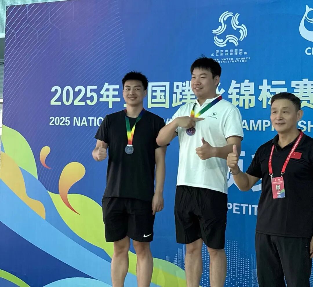 李大培、钟小康、罗岩松、许天乐获得男子(高校组)4×200米蹼泳接力第三名。李大培、李洋、罗岩松、许天乐获得男子(高校组)4×100米蹼泳接力第四名。本次大赛由亚洲潜水联合会、国家体育总局水上运动管理中心主办,江苏省体育局、南通市人民政府承办。该赛事作为今年亚洲蹼泳锦标赛的国家队选拔赛,共有来自全国各省市及北京体育大学、中南大学、苏州大学等院校共27支代表队参加。比赛现场,运动员们展开激烈竞争,我校学子凭借精湛的技巧和强大的腿部力量,在水中疾速前进,激起层层水花,展现了顽强拼搏、勇于突破的精神风貌,以速度与激情完美诠释了蹼泳的独特魅力。