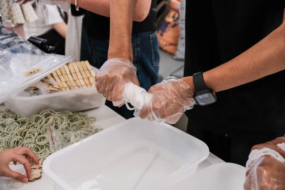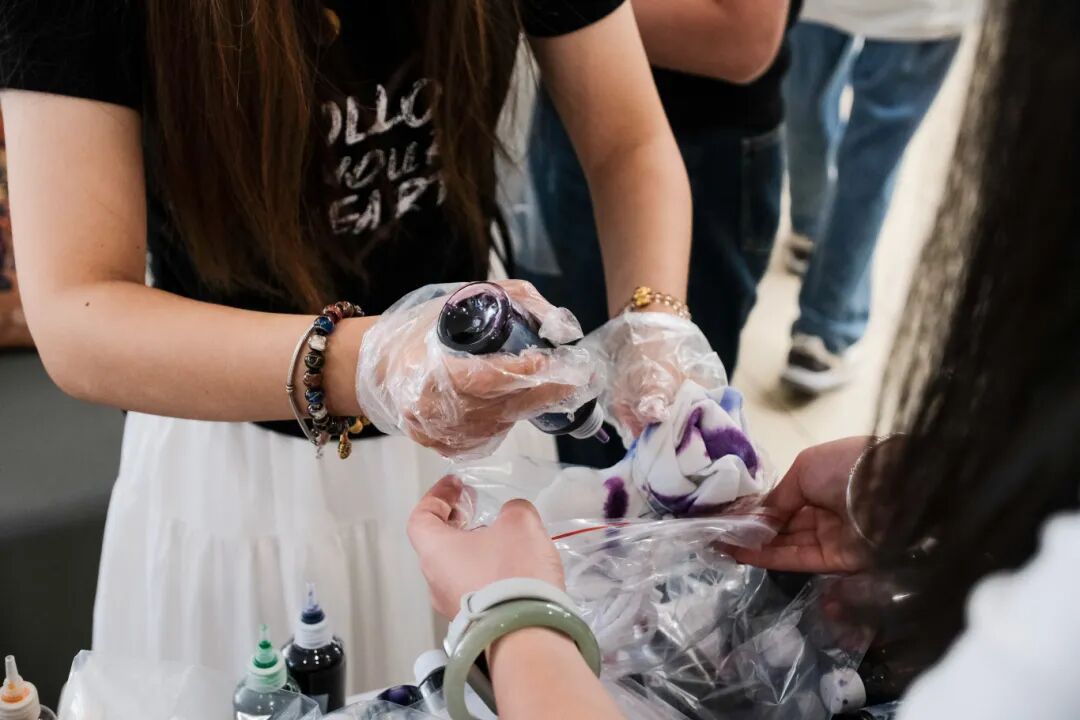 DIY扎染体验环节,新生们在志愿者的引导下,亲手创作独一无二的扎染作品,为本次生日会画上了圆满的句号。