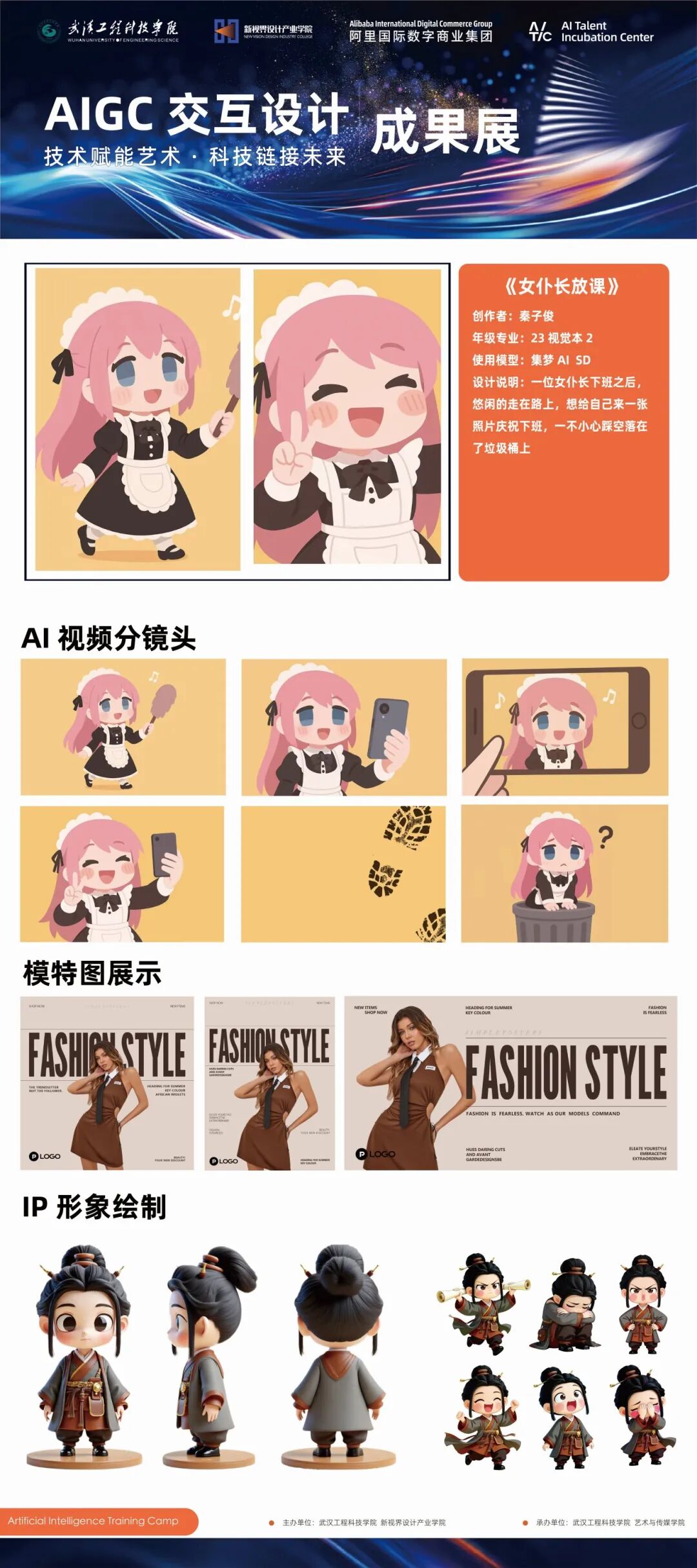 活动中,阿里巴巴技术团队与高校专家为学员提供了专业指导,助力学生掌握AIGC技术的商业化应用路径。工坊活动结束后,一批优秀作品在实训中脱颖而出,展现了产学研融合的创新成果,提升了学生在人工智能与跨境电商交叉领域的竞争力,为社会培养了“新外贸”人才。