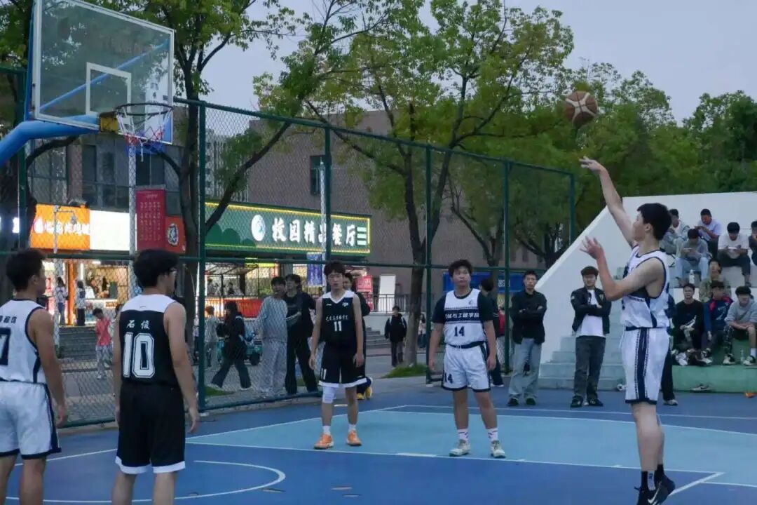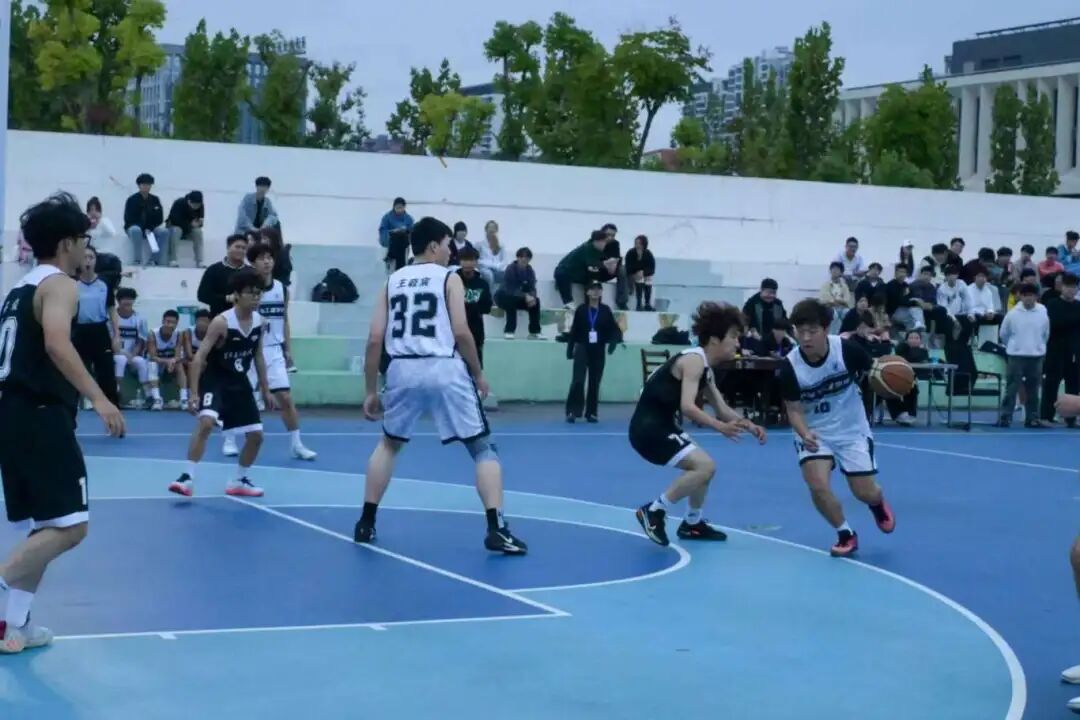 首场比赛由机械与工程学院迎战艺术与传媒学院。随着裁判将球高高抛起,双方中锋全力跃起争球,比赛一触即发。机械与工程学院开局攻势凌厉,10号选手吴一帆率先得分,14号周琚安与4号付豪默契配合、连续取分,11号刘冠成凭借逼真假动作与精准三分迅速拉开比分。白色方替补席欢呼雀跃,场边观众掌声雷动。艺术与传媒学院亦奋起直追,7号刘宇韩底线发球后迅速发动快攻,斩获关键得分,提振全队士气。最终,机械与工程学院以53比17赢得首胜,展现出强劲实力。