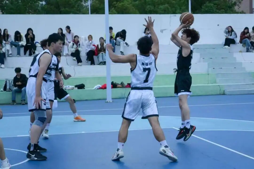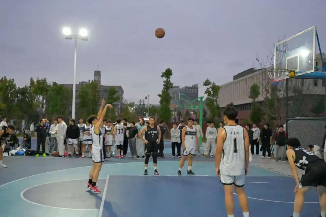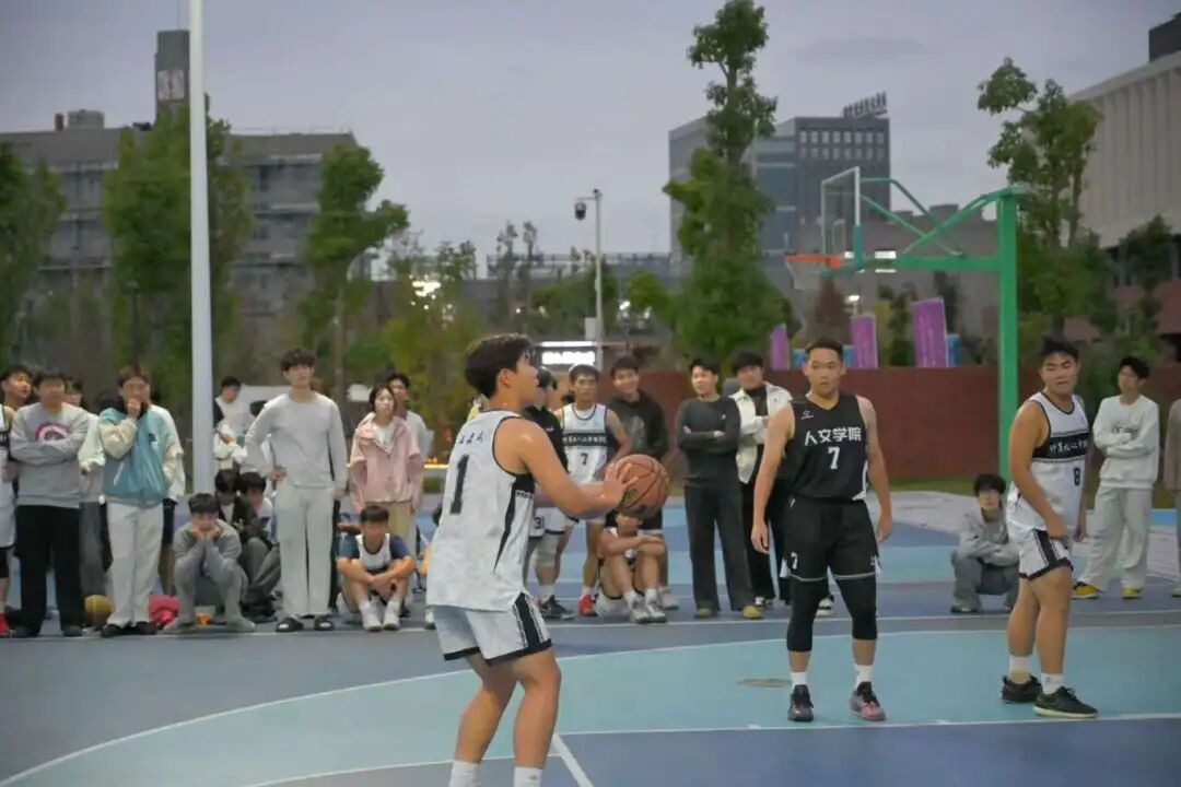 另一场由计算机与人工智能学院对战人文学院,交锋紧张激烈。人文学院11号沈鑫骏在弧顶面对严密防守,一记沉肩加速突破率先得分。计算机与人工智能学院7号简立德迅速回应,持球快下直冲篮下,命中三分瞬间点燃全场。双方比分交替上升,悬念迭起。8号熊浩语连续命中远投,助计算机与人工智能学院确立领先。人文学院1号王世博不甘示弱,凭借出色爆发力完成单手强势上篮,将比分再度追平。最终熊浩语凭借关键罚球锁定胜局,计算机与人工智能学院以49比45险胜对手,完成精彩绝杀。