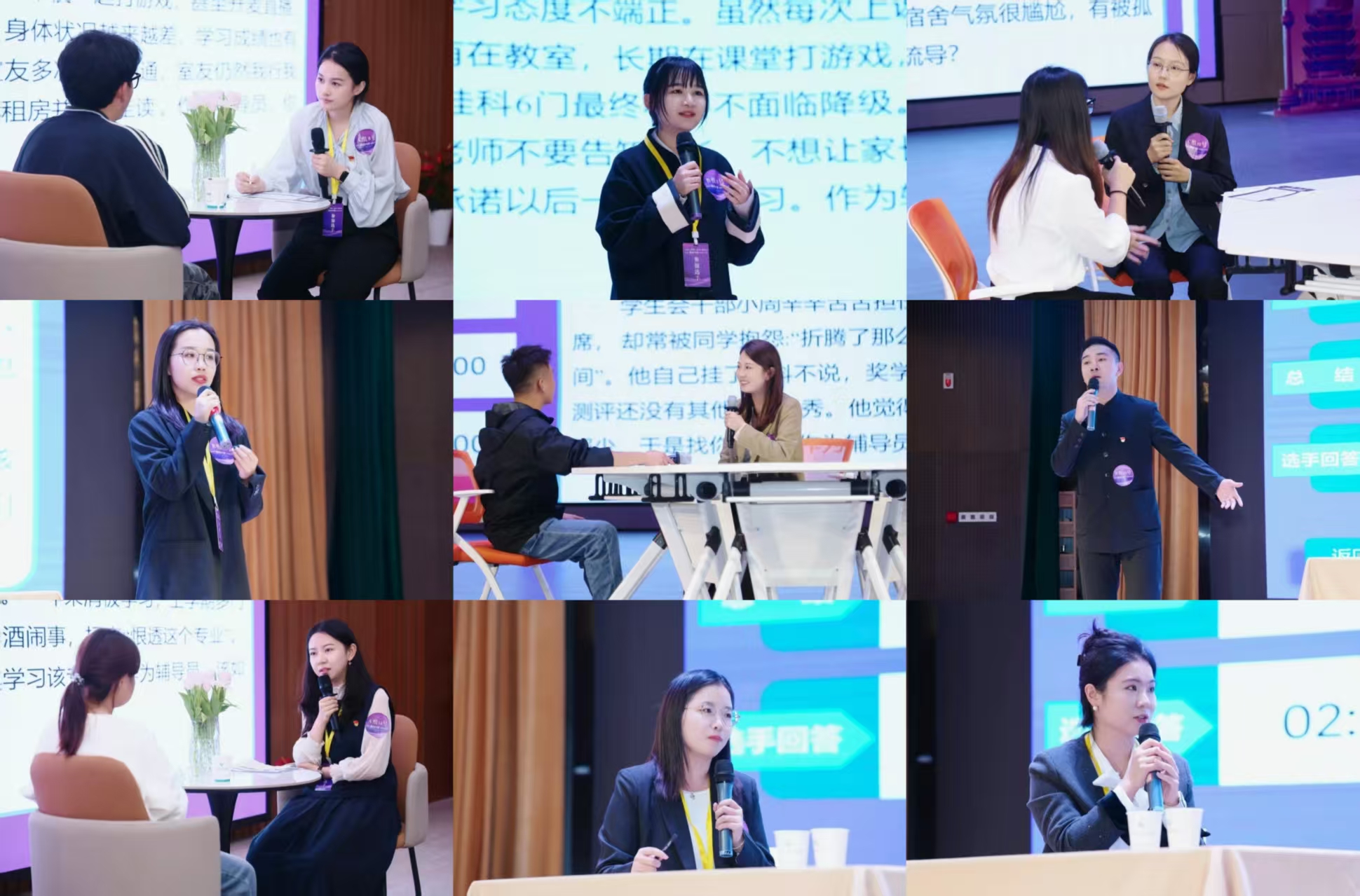 “老师,我失恋不想活了”“宿舍人都孤立我,不跟我玩”“老师,有人把我挂在表白墙”,谈心谈话环节中,选手围绕学业困难、人际矛盾、网络舆情、职业规划、心理健康、入党动机等多类真实场景展开情景模拟,与学生进行一对一谈话,认真倾听学生的困惑,精准剖析学生面临问题的本质,提出解决思路和实施办法,展示出了良好的职业素养和精神风貌。