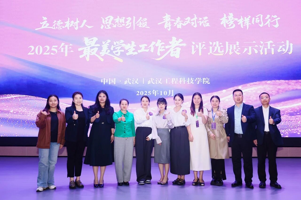 近日,由全国近20所高校联合举办的2025年“最美学生工作者”评选展示活动在武汉举行。在为期四天的活动中,来自全国多所高校的45名辅导员同台交流、各展风采。我校选派的三位辅导员——计算机与人工智能学院江月、艺术与传媒学院韩云、王敏,在激烈竞争中表现突出,全部荣获“最美学生工作者”称号,展现出我校学生工作队伍的扎实素养与良好风貌。