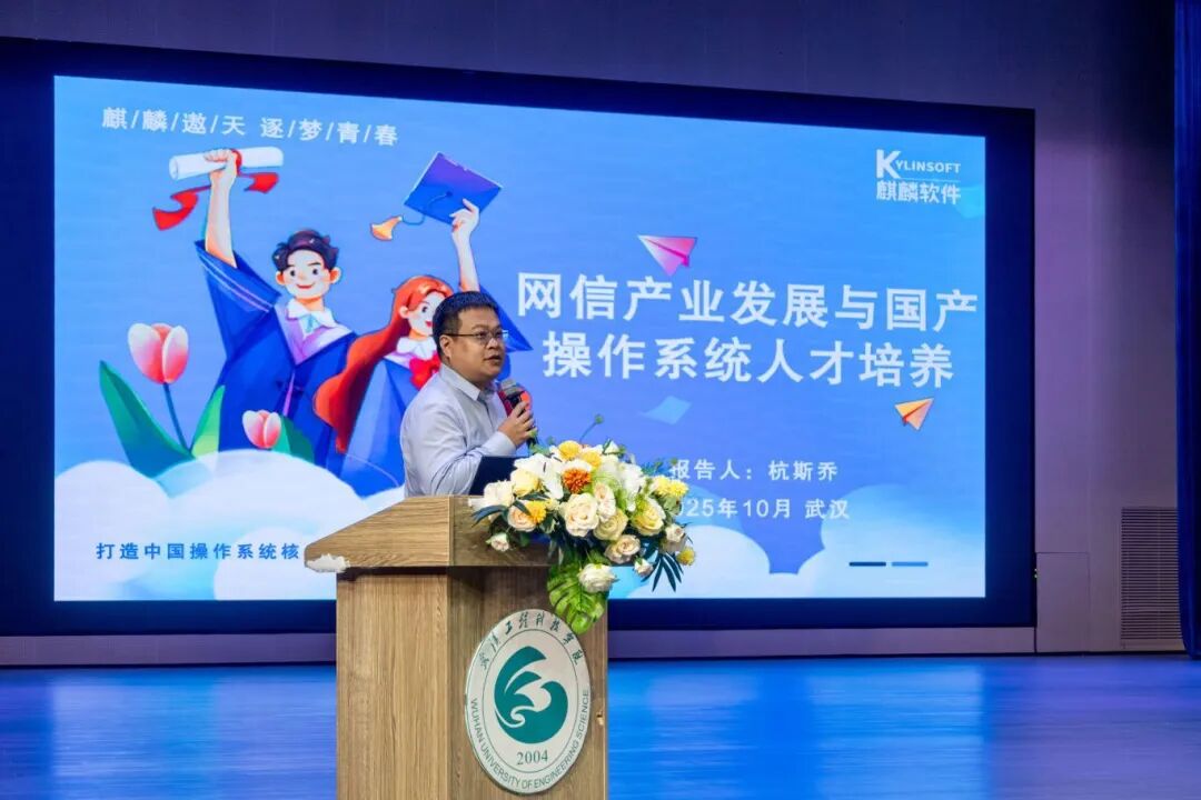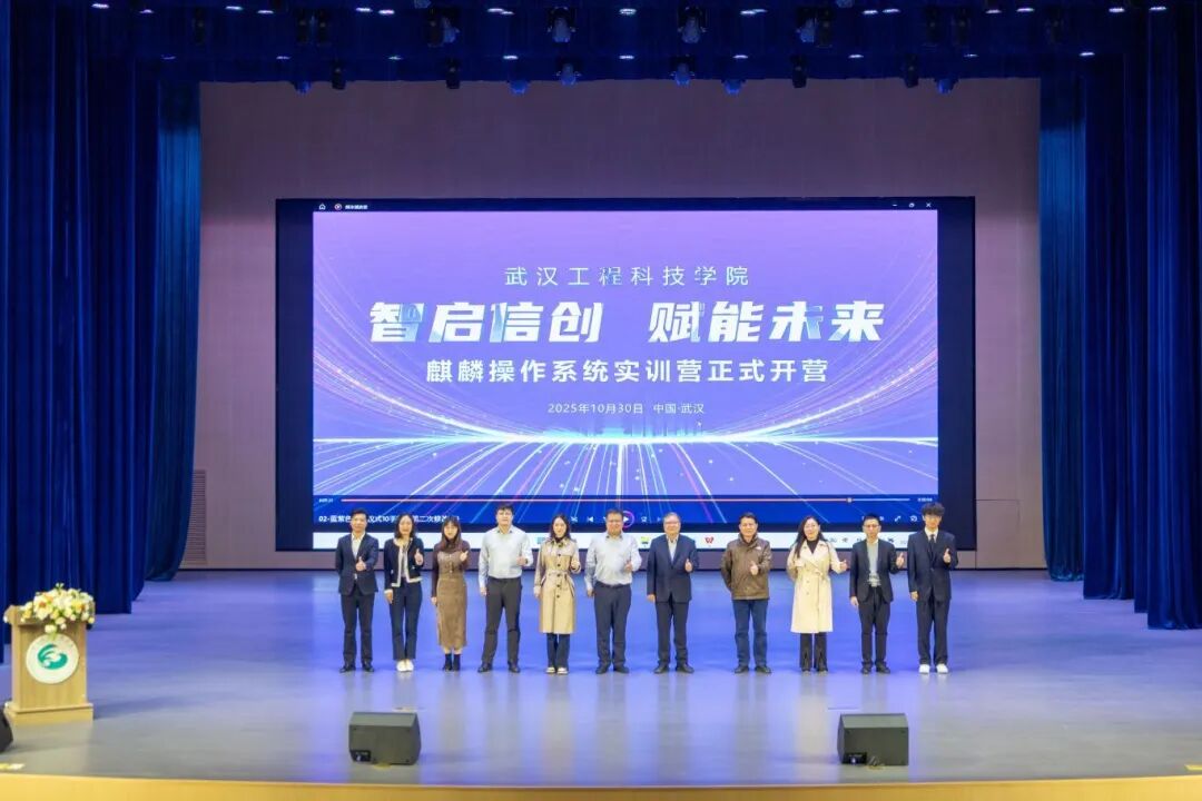 10月30日,武汉工程科技学院举行麒麟工坊实训基地揭牌仪式暨麒麟操作系统实训营开营仪式。本次活动由武汉工程科技学院新E代数智未来产业学院主办,计算机与人工智能学院承办。此次活动标志着学院在国产操作系统人才培养领域迈出重要一步,吸引了麒麟软件有限公司高层、校方领导及500余名师生共同参与。