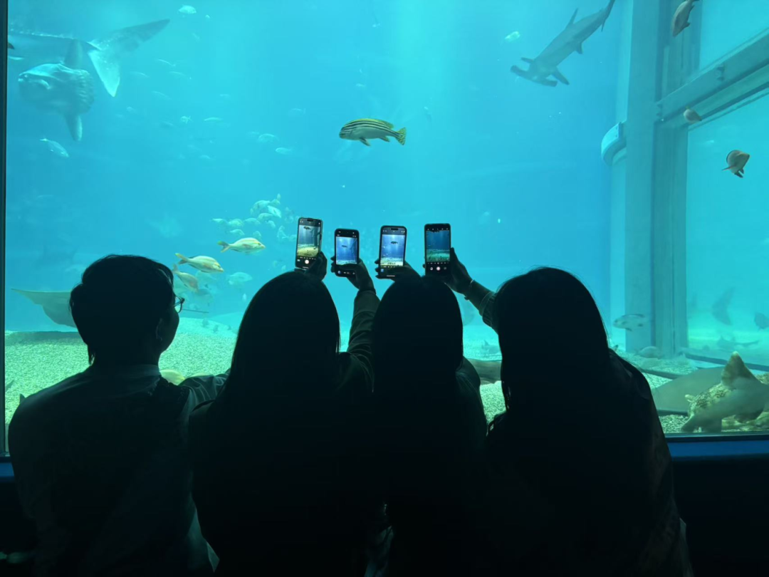 神户港的晨光中,红色Port Tower与洁白的海洋博物馆相映成趣。同学们在海风轻拂中写生摄影,记录下建筑与海洋的和谐对话。"原来城市与自然可以如此相融!"陈健同学在研学手册上认真写道。午后的大阪海游馆瞬间点燃热情。站在8米高的水槽前,看着鲸鲨优雅巡游,沙丁鱼群如银色风暴般席卷而来。夜幕降临,同学结伴探索心斋桥商圈,在药妆店比较价签,在街头品尝热腾腾的拉面,真正触摸到了这座城市的温度。