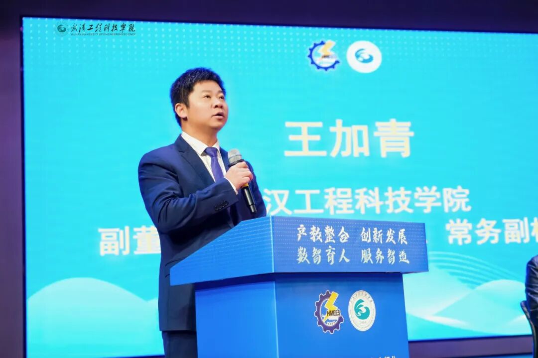 作为活动承办方,武汉工程科技学院副董事长、党委副书记、常务副校长王加青致欢迎辞。他代表学校全体师生向各位专家学者的到来表示热烈欢迎,并简要介绍了学校的办学历程和办学成果。他表示,本届峰会既是机电行业产学研训交流的高端平台,更是凝聚共识、汇聚合力、推动中部地区制造业高质量发展的重要契机。他期待,参会各方能秉持开放包容、合作共赢的理念,以科技创新为引领,以人才培养为核心,以产业需求为导向,持续深化产学研训融合机制,凝聚跨领域发展合力,破解产业链关键难题,为机电行业高质量发展筑牢根基、开辟新局,为区域产业转型升级注入新活力,为社会经济发展增添新动能。