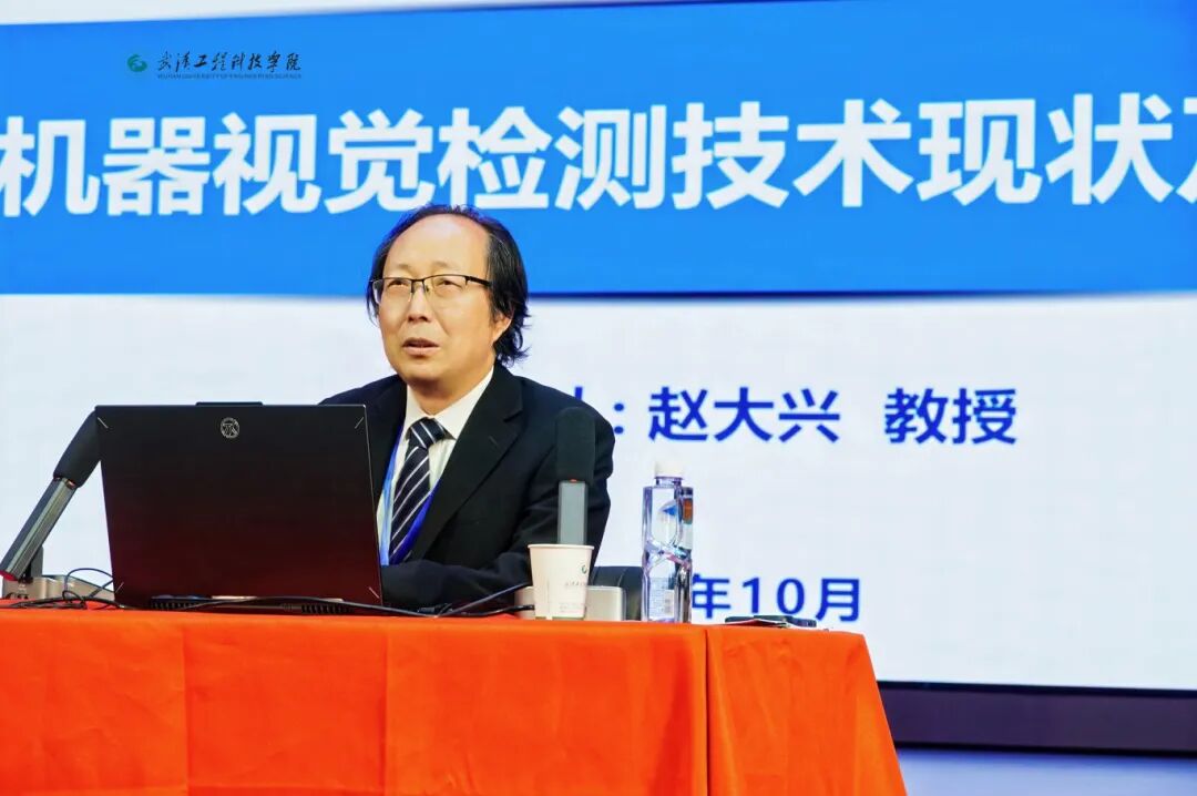 武汉工程科技学院机械与工程学院院长赵大兴教授作题为《机器视觉检测技术现状及应用》的主题报告。