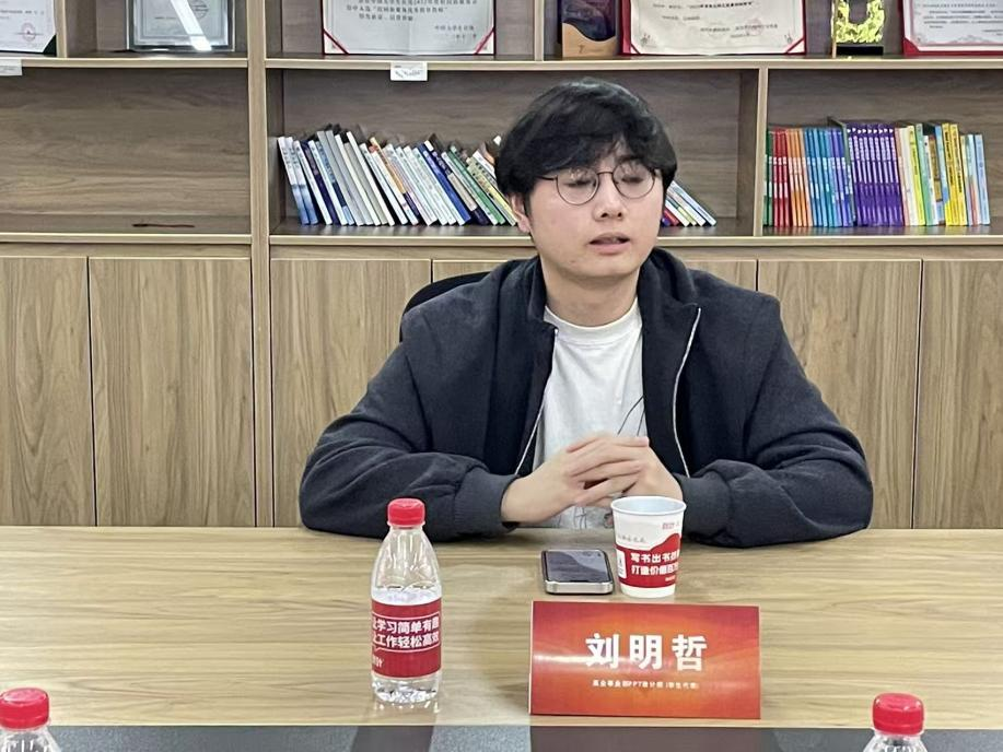 在交流环节,就职于秋叶科技的校友、2022届英语(英法双语方向)专业毕业生刘明哲也分享了自己的成长经历,并建议学弟学妹们在大学期间注重提升自身专业能力与综合素养,增强内驱力,明确职业目标与发展方向,为未来就业奠定坚实基础。