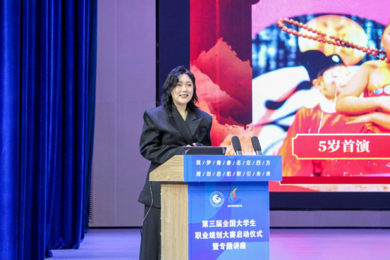 第二届湖北省大学生职业规划大赛成长赛道金奖获得者、艺术与传媒学院22级表演专业学生黄义蕙现场展示了比赛过程,讲述了如何将学业、兴趣与职业目标相结合的过程,其真诚的分享为计划参赛的同学提供了宝贵的借鉴。