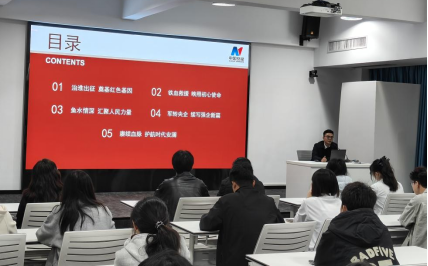 来到中国安能三局武汉分公司园区,在工作人员的组织下,师生们前往应急救援员鉴定中心集中观看武汉救援基地宣传片。十分钟的影像以真实抢险场景,生动诠释了“危险在哪里,救援就在哪里”的使命担当,为这堂“行走的思政课”写下鲜活注脚。随后,公司人力资源部部长李焱带来题为“红色基因铸魂 为民担当筑梦”的专题讲座。他从部队历史沿革讲到企业转型发展,结合亲身经历与典型案例,深入阐释了“全心全意为人民服务”的宗旨是如何内化为企业灵魂、外化为攻坚克难行动的。