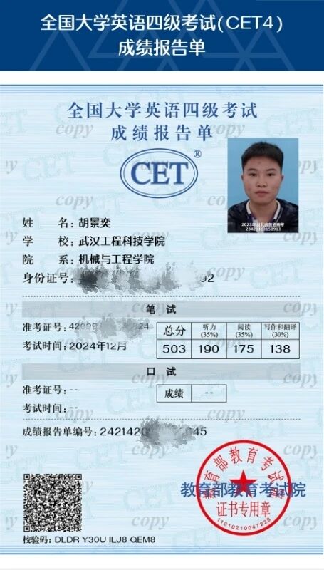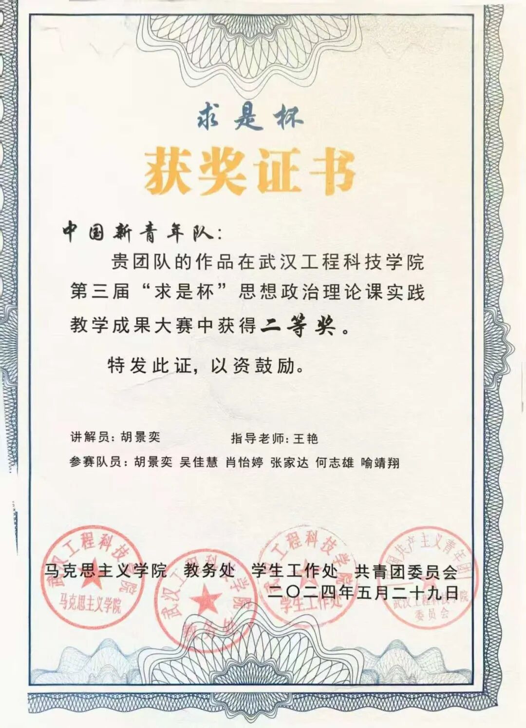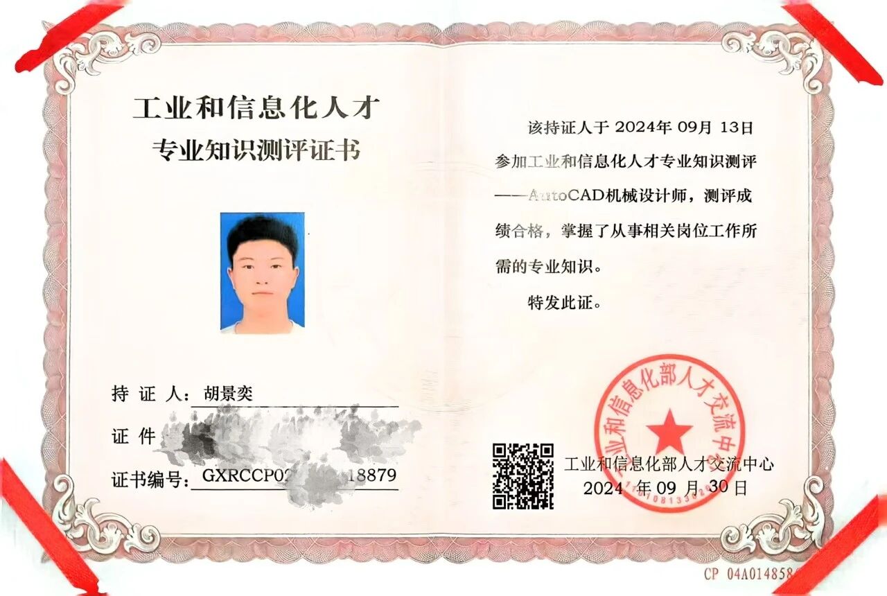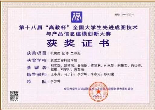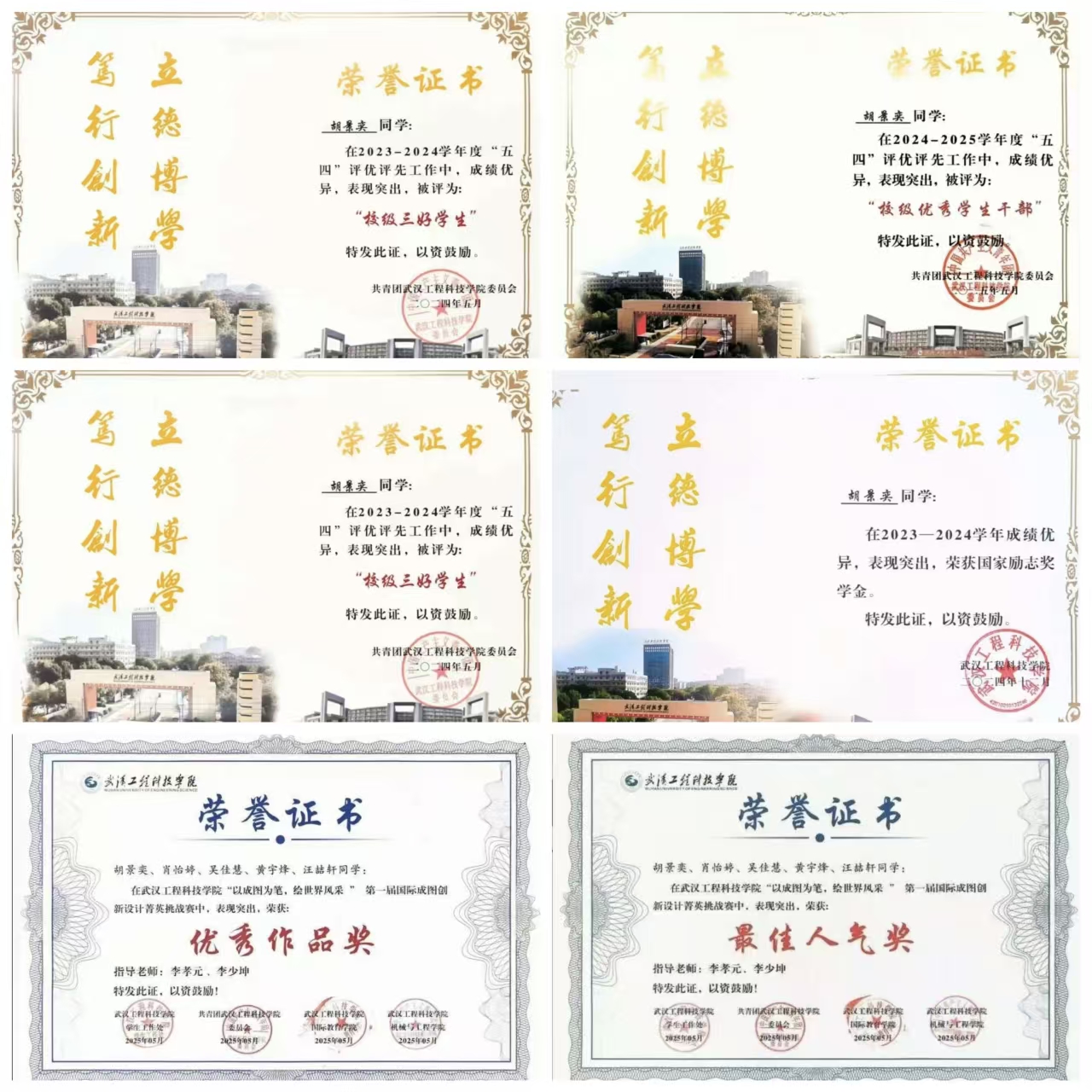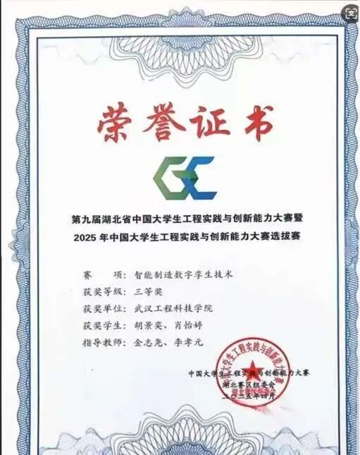 朝乾夕惕,功不唐捐。初入大学,胡景奕却对自己的未来有着明确的目标,通过不懈的努力和坚持,学业和综合素质皆有所精进。他秉持积极进取的学习态度,学业之余还会参加许多竞赛,他获得了第十八届“高教杯”全国大学生先进成图技术与产品信息建模创新大赛机械类“团体”全国“二等奖”、第九届湖北省中国大学生工程实践与创新能力大赛暨2025年中国大学生工程实践与创新能力大赛选拔赛省级“三等奖”、第十八届“高教杯”全国大学生先进成图技术与产品信息建模创新大赛北方联盟赛区选拔赛机械类省级“三等奖”等各大奖项。“我认为竞赛是我们人生当中的一个重要经历,能够给我们带来很大的提升。”他这样说。