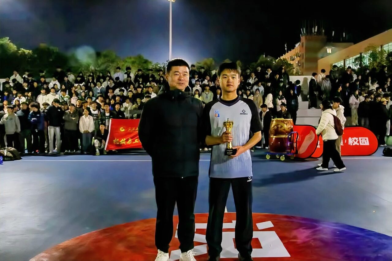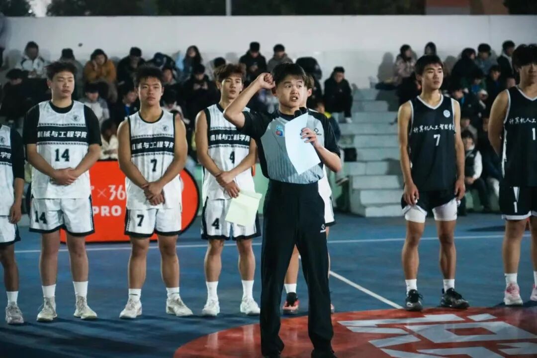 为弘扬体育运动精神,增强学生身体素质,11月19日傍晚,武汉工程科技学院2025年“新生杯”篮球决赛暨颁奖仪式在学校灯光篮球场举行。机械与工程学院党总支书记王启帆,计算机与人工智能学院党总支书记钟晓星,人文学院副院长、公共体育教学部主任、体育系社会体育指导与管理专业负责人郭生鼎,相关学院师生代表以及运动员们参加本次活动。