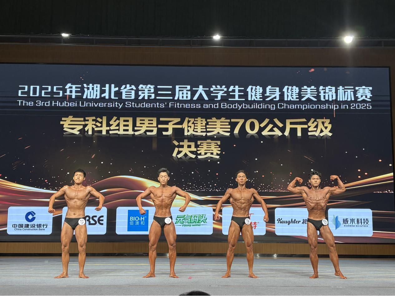 本次赛事由湖北省大学生体育协会主办,湖北科技学院承办,吸引了省内40所院校,505名健身健美精英同台竞技。在为期两天的激烈角逐中,我校运动健儿克服困难,挑战自我,凭借出色的形体状态和舞台表现力,在强手如林的赛场上脱颖而出,8名参赛队员全部榜上有名,取得了优异的成绩,充分展现了我校学子良好的精神风貌和竞技水平。