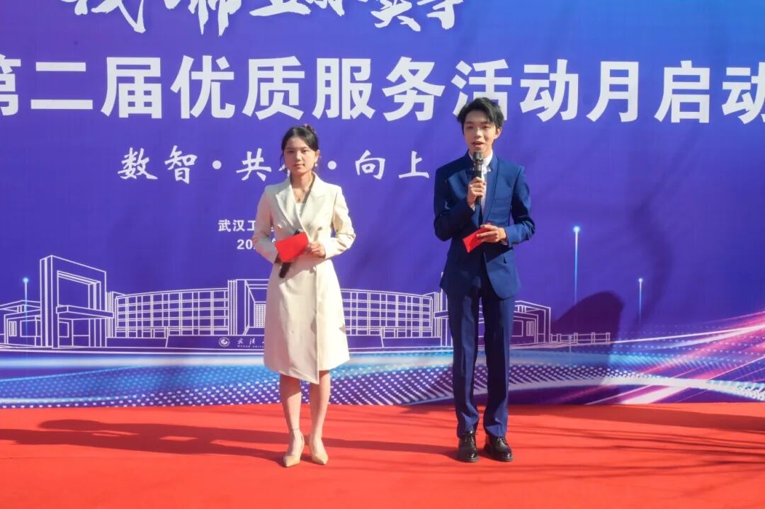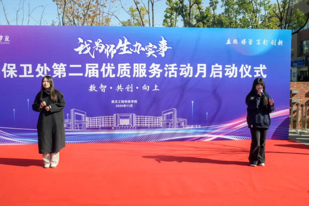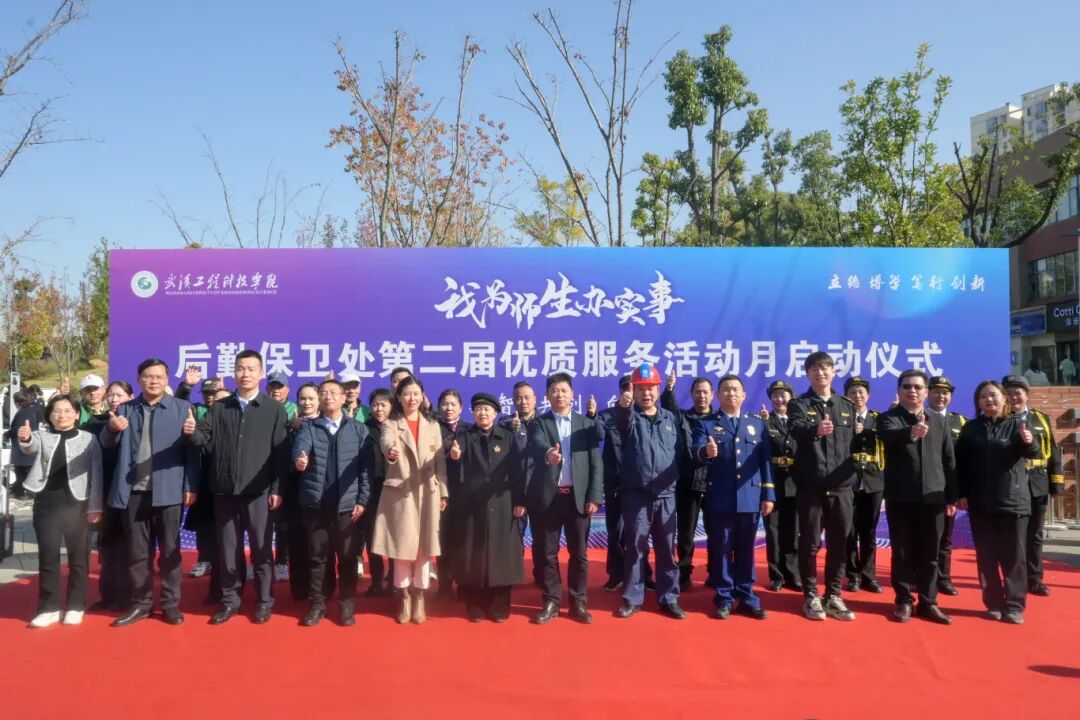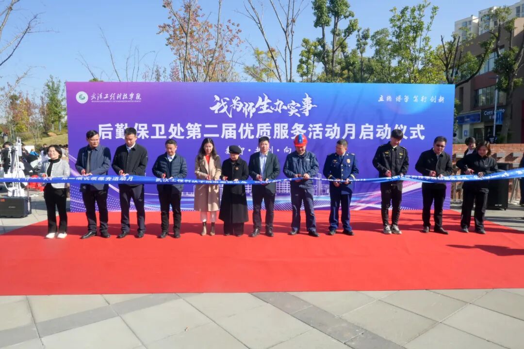 为持续深化“服务育人、管理育人、环境育人”理念,11月26日下午,武汉工程科技学院后勤保卫处“我为师生办实事”第二届优质服务活动月启动仪式在中心广场拉开帷幕。江夏区市场监督管理局青龙市场监督管理所副所长喻志军、项寅,江夏区供电公司纸坊营业所主任全杰,江夏区水务发展有限公司纸坊营业所所长邹能谱、副所长黄祥,江夏区疾控中心科长周畅,江夏区消防救援局纸坊站站长沈冰洋,纸坊派出所驻校民警牛相超,学校副董事长、党委副书记、常务副校长王加青,党委书记张会利,党委副书记、副校长廖璐莎,党委副书记、校长助理唐军国,党委常委、校长助理郭万春,党委常委、校长助理赵欢出席活动。各学院党总支书记、后勤保卫处全体员工、教师及学生代表参加活动。