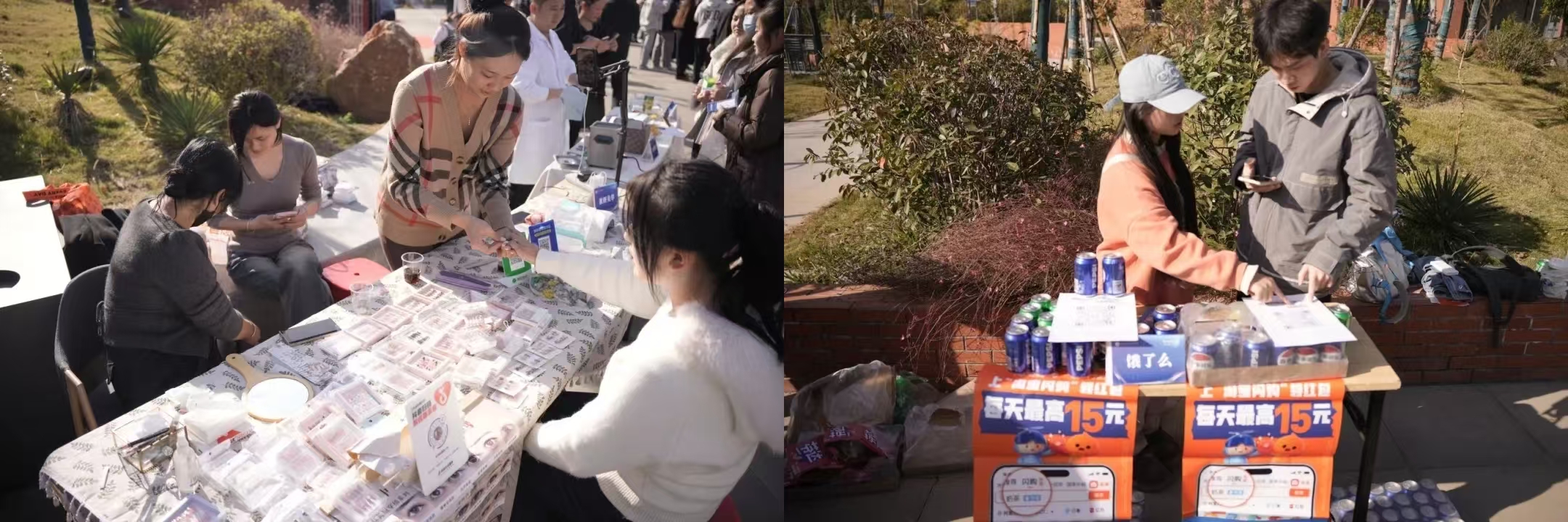 校园市集区集中推出多项后勤服务优惠活动,包括奶茶甜品折扣、校园超市促销、文具特卖以及快递优惠券发放,切实为师生带来实惠与便利。
