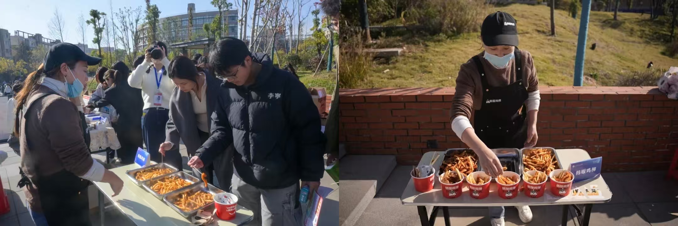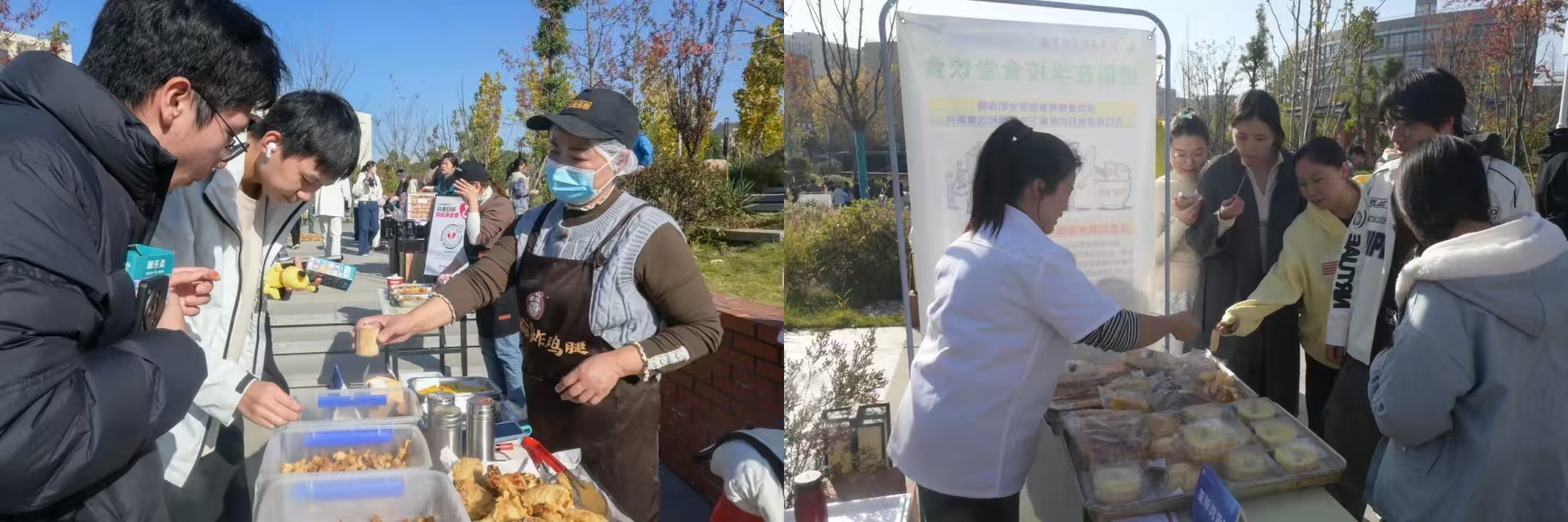 美食体验区,汇聚了学校一、二、三食堂的经典菜品与创新特色菜品,全程向师生免费开放试吃,让大家在味蕾体验中,感受校园美食的独特魅力,增进对校园餐饮服务的了解与认可。