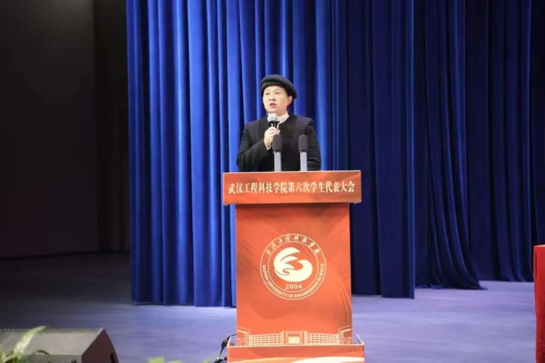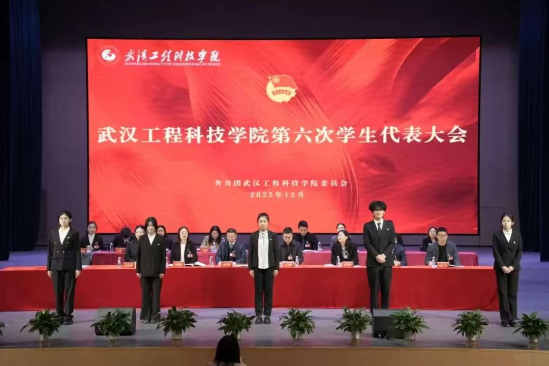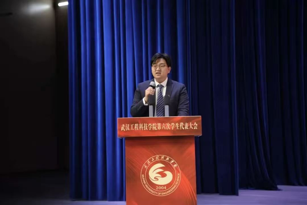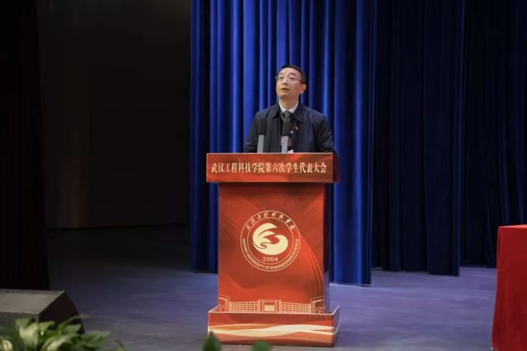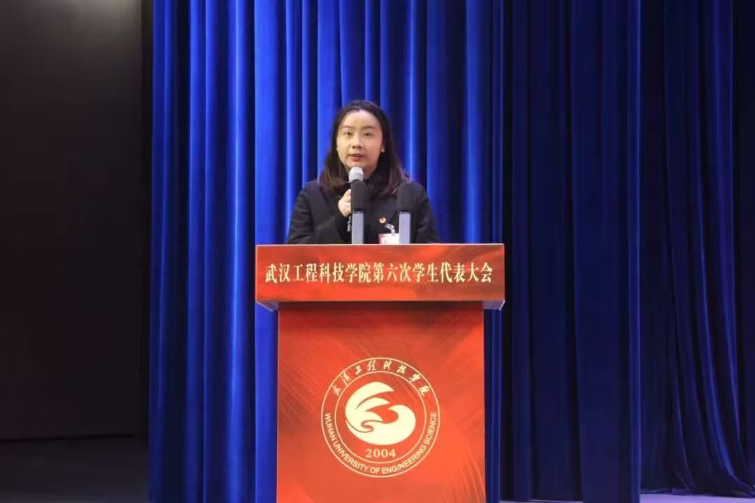 为保障学生权利,凝聚学生力量,搭建学校与学生的沟通桥梁,12月2日下午,武汉工程科技学院第六次学生代表大会在四教大礼堂召开。湖北省学生联合会驻会执行主席李帅辰,武昌工学院、武汉华夏理工学院、武汉体育学院体育科技学院校外嘉宾,学校党委书记张会利,党委副书记、校长助理唐军国,党委组织部干事张广隶出席会议。各学院党、团总支书记,师生代表参加会议。会议由校团委书记张瑾主持。
