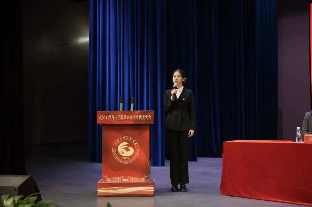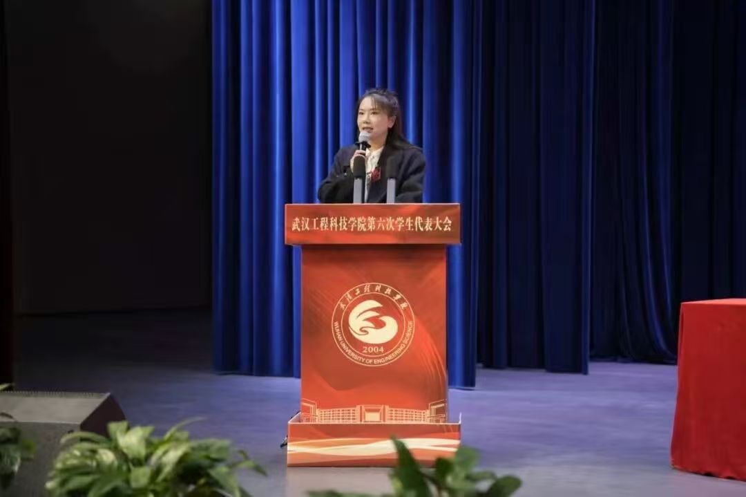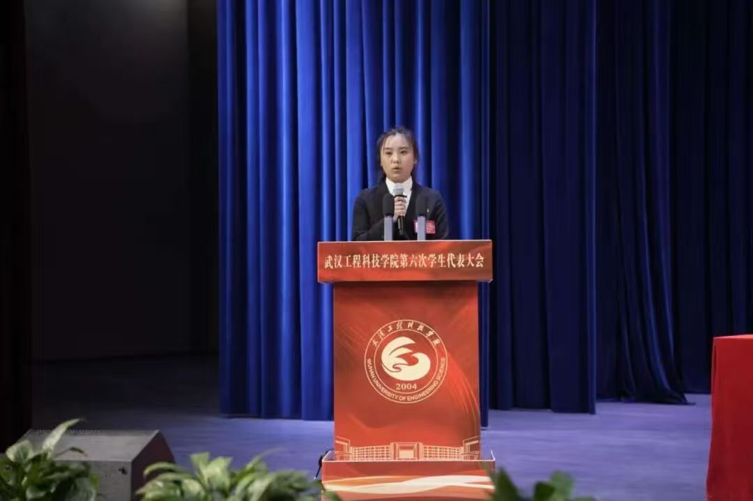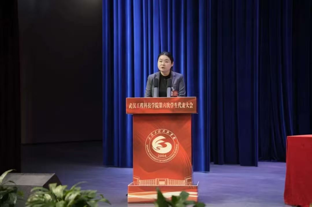 22级汉语言文学专业的饶智玮代表武汉工程科技学院第五届学生委员会,作学生委员会工作报告。她表示,在学校党委和校团委的精心指导下,第五届学生委员会牢记初心使命,传承上一届工作技术,组织改革方案,并取得了显著成效。她承诺,学生委员会将稳步夯实日常工作基础,始终坚守政治性、先进性、群众性的核心要求,持续深化自身改革,认真履行桥梁纽带职能。