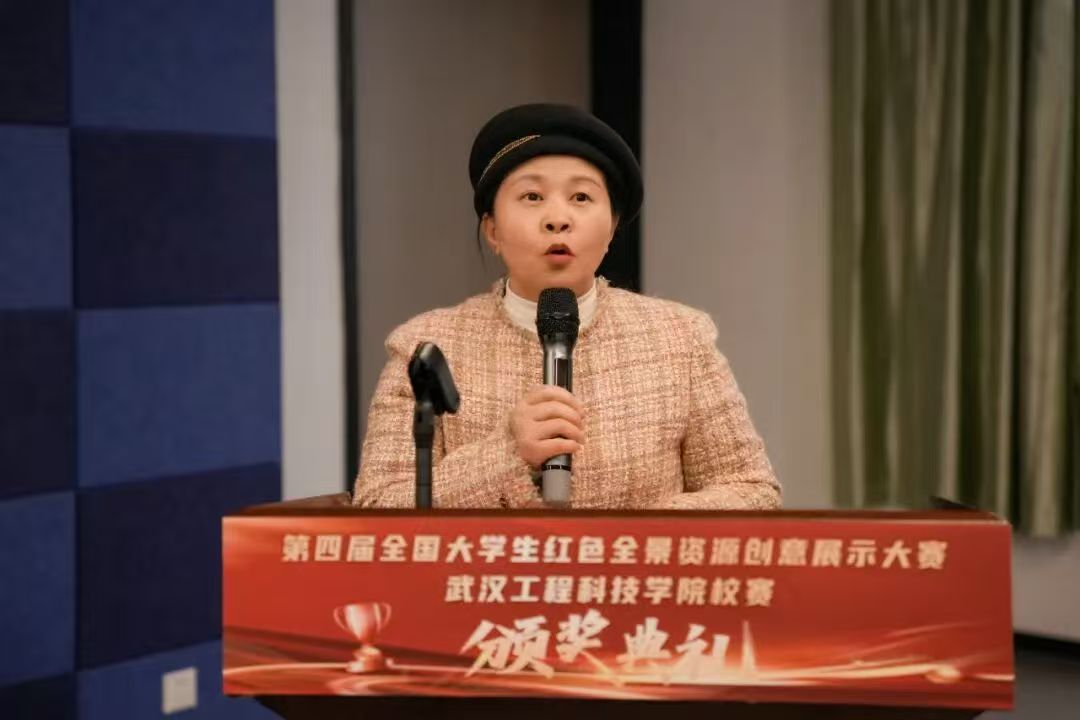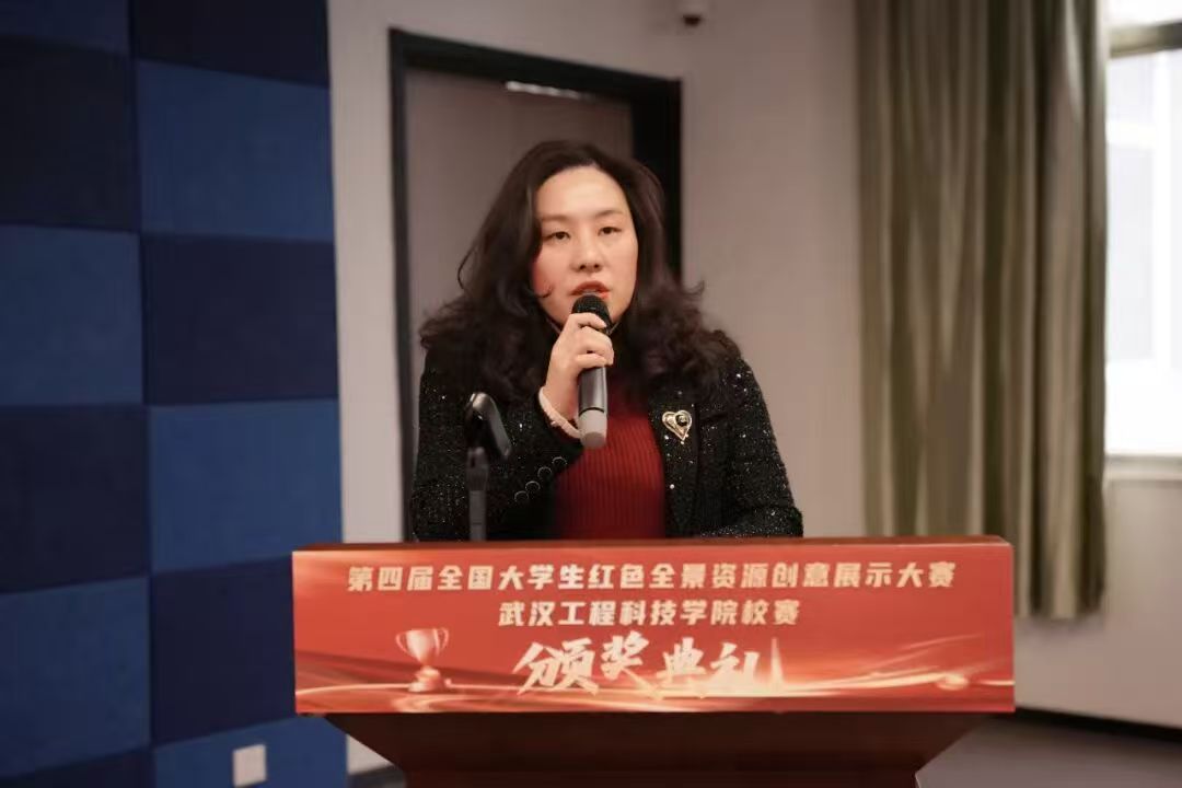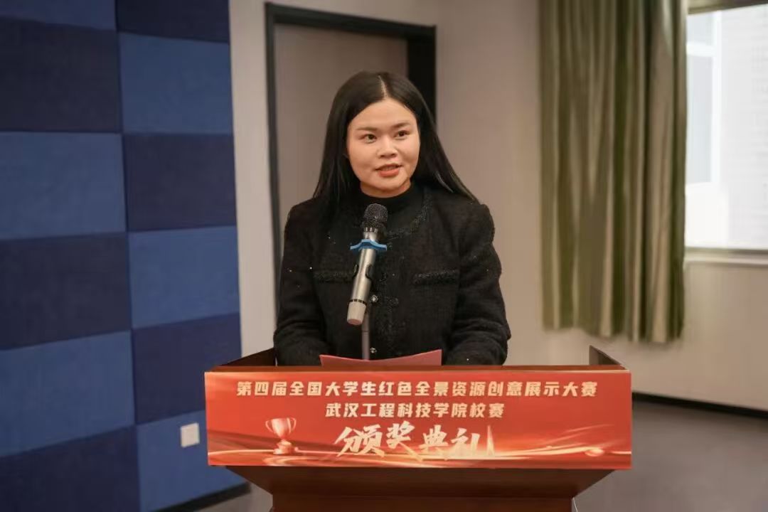 胡晶晶宣读《关于表彰第四届全国大学生红色全景资源创意展示大赛武汉工程科技学院校赛获奖团队的决定》。