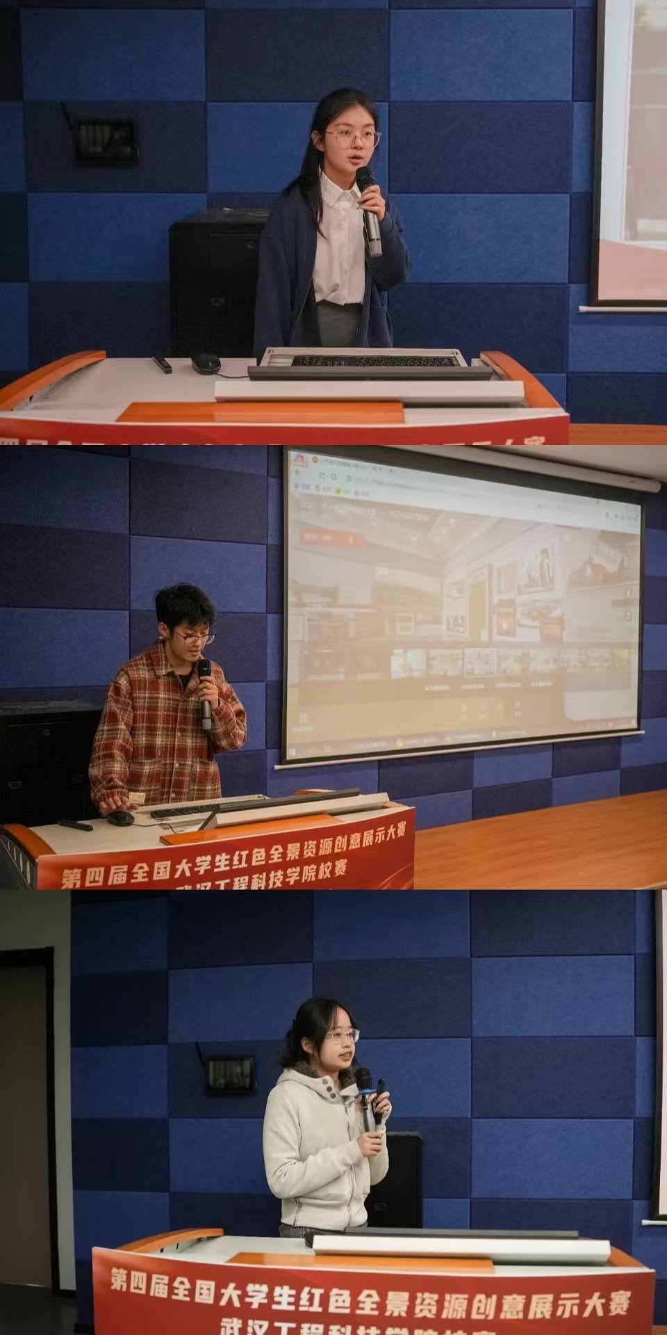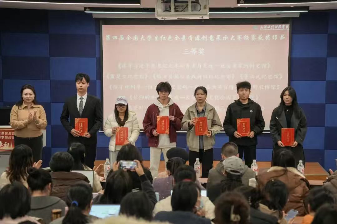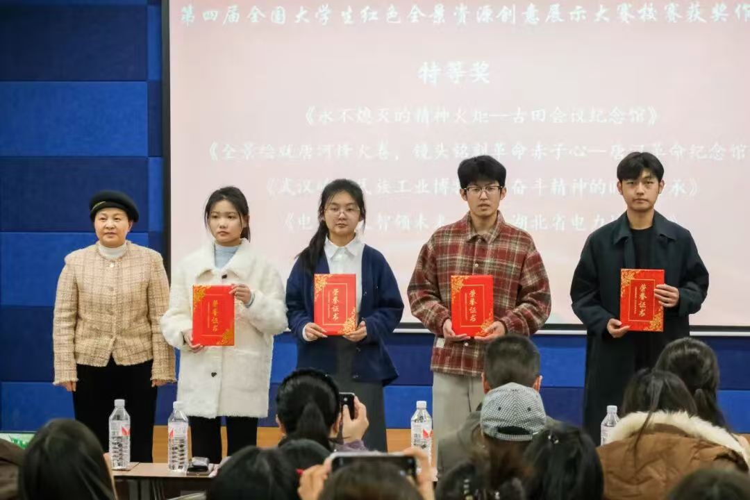 为传承红色基因,培育时代新人,12月3日下午,第四届全国大学生红色全景资源创意展示大赛武汉工程科技学院校赛颁奖典礼在一号教学楼215举行。学校党委书记张会利,党委常委、校长助理胡晶晶,党委组织部副部长吴夏,教务处副处长隆芳敏,校团委书记张瑾,教务处处长助理刘燕出席活动。马克思主义学院院长阎占定、副院长高莉、学院全体教师、获奖团队成员、求是宣讲队及青马班学员代表参加活动。