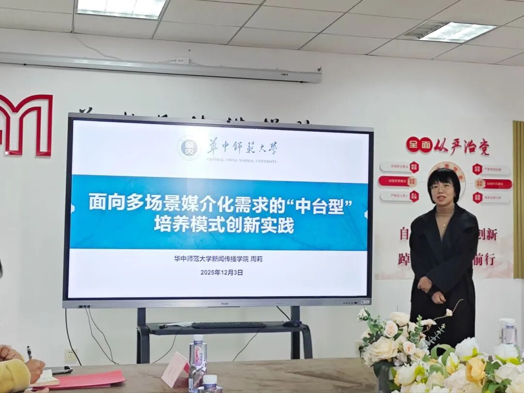 华中师范大学周莉教授提出“中台型”人才培养框架,强调以“四育”理念推动教育从“适应”走向“调适”;武汉纺织大学马庆教授聚焦“特色突围”,阐述如何依托学校优势学科培育“专精特新”型传播人才;武汉文理学院吴聪教授系统介绍了应用型高校网络与新媒体专业建设体系,强调“双轨实践”与项目化教学的重要性。