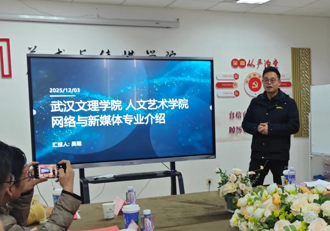 为进一步明确智媒时代人才培养的核心方向,探索新媒体产教融合创新发展模式。2025年12月3日,由武汉工程科技学院主办、艺术与传媒学院承办、长江日报传播研究院支持的“2025年新媒体产教融合创新发展论坛” 顺利举行。华中师范大学新闻传播学院副院长周莉,武汉纺织大学传媒学院副院长马庆,武汉文理学院人文艺术学院院长吴聪,长江日报传播研究院负责人龚平,湖北广播电视台新闻中心副主任刘征,新浪微博湖北政旅总经理邱灵等,受邀出席活动并做精彩分享。武汉工程科技学院党委副书记、副校长廖璐莎,沈祥胜、副院长魏敏以及传媒系、表演系全体教师共同参加本次活动,活动由传媒系教师陈凯旋主持。