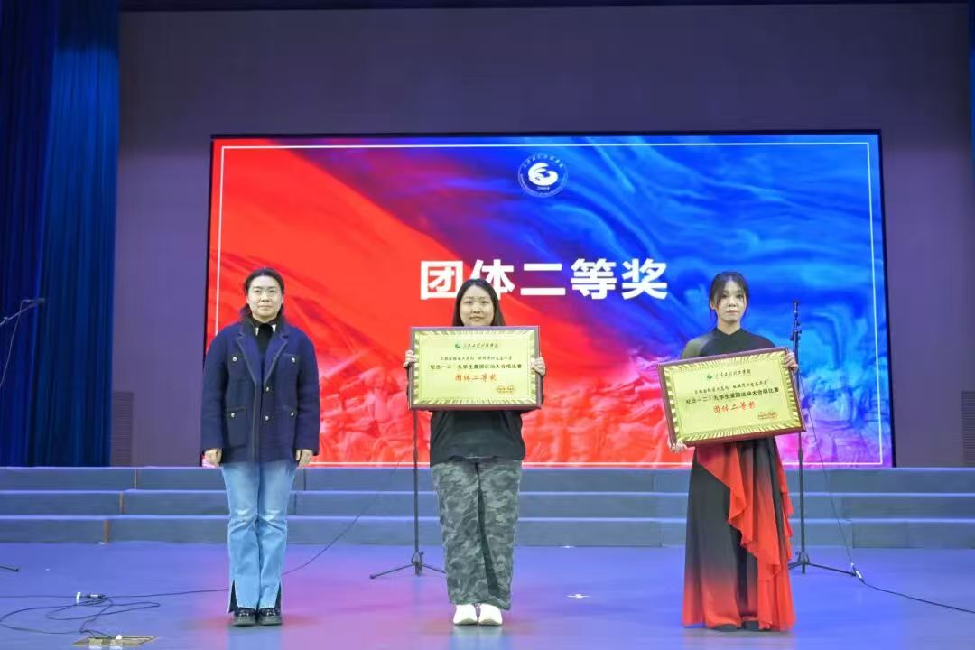 张瑾为经济与管理学院、艺术与传媒学院颁发团体二等奖。