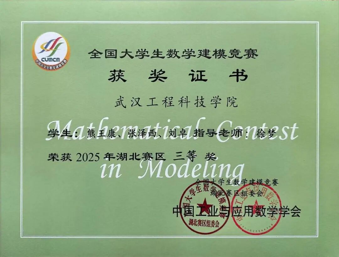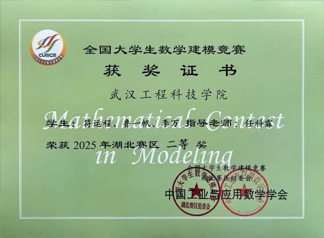 近日,2025年全国大学生数学建模竞赛落下帷幕,武汉工程科技学院的学子与众多公办高校同台竞赛,斩获全国大学生数学建模大赛湖北赛区二等奖1项,三等奖1项。