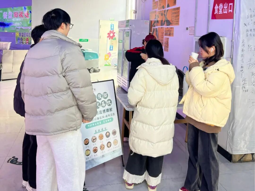 活动现场秩序井然,师生自觉排队领取,文明有序的场景成为冬日校园里的一道暖心风景线。“最近流感多发,学校及时送上的中药茶饮既暖身又安心。”教职工李老师手持温热茶杯感慨道。学生小王刚下课便赶来领取:“宿舍有同学轻微咳嗽,代茶饮既方便又放心,真切感受到学校实实在在的关怀。”据后勤保卫处相关负责人介绍,此次代茶饮配方为专家科学配比,既确保药效安全又兼顾口感接受度,真正实现“暖心更安心”。