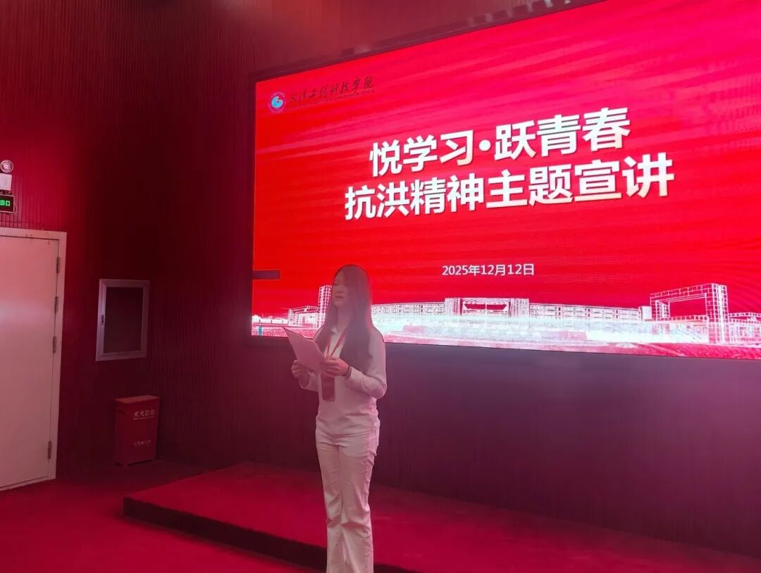 随后,校青马班学习委员陆子珊作了题为《悦学习·跃青春——以抗洪精神筑青春底色,为“十五五”贡献青春力量》的主题宣讲。宣讲围绕“悦学习·跃青春”结合簰洲湾抗洪历史,阐释了抗洪精神中不畏艰险、团结奋斗的时代内涵,结合国家发展的目标任务,希望同样作为青年学子的学员们能将个人成长融入国家发展大局,号召学员们以抗洪精神砥砺前行,在学习中夯实本领,在青春中勇担使命,以实际行动传承精神血脉,为全面建设社会主义现代化国家贡献青春智慧与力量。