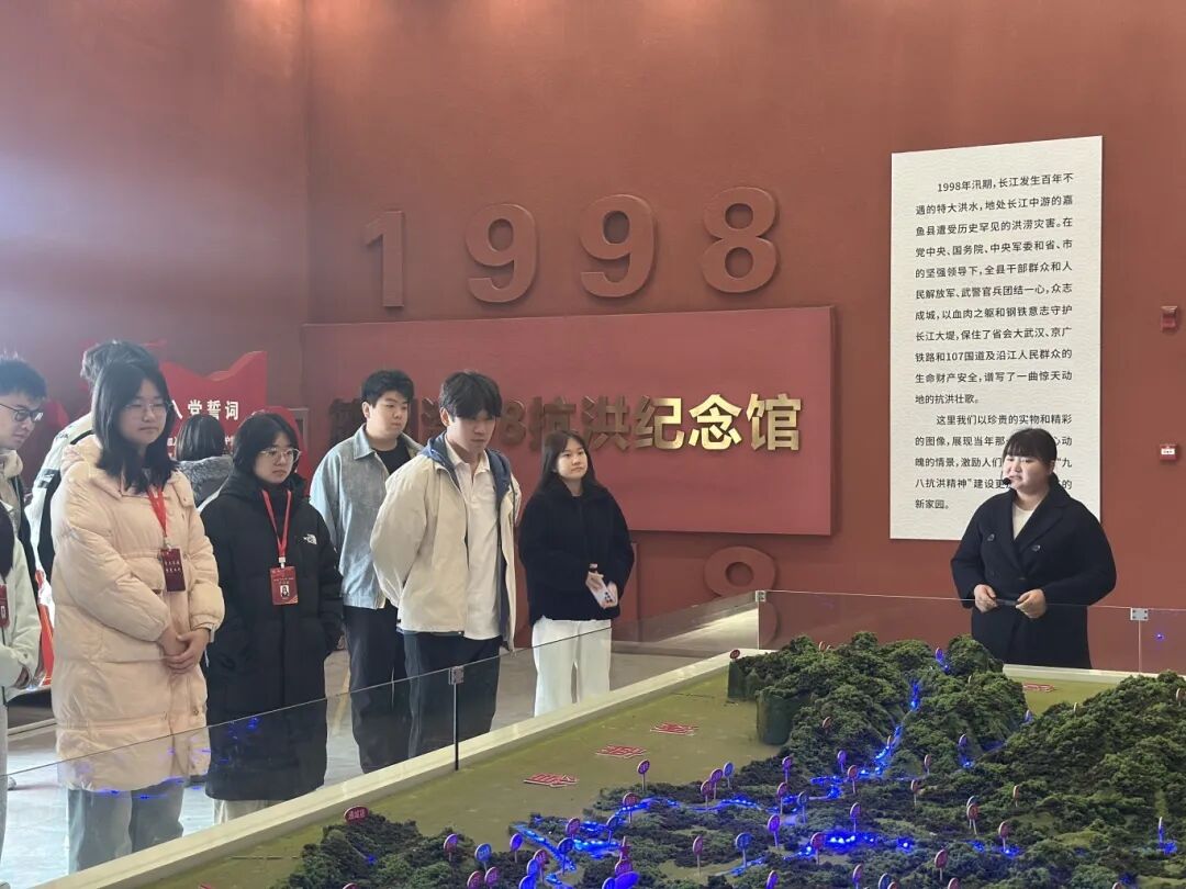 12月12日,武汉工程科技学院校院两级青马班学员代表赴簰洲湾98抗洪纪念馆开展了以“学习抗洪精神,凝聚青春力量”为主题的研学活动,此次研学活动由校级青马班班主任肖玉容带队。活动旨在通过实地学习、仪式教育、主题宣讲等形式,引导青年学子深刻领会“万众一心、众志成城,不怕困难、顽强拼搏,坚韧不拔、敢于胜利”的伟大抗洪精神,进一步坚定理想信念,强化使命担当。