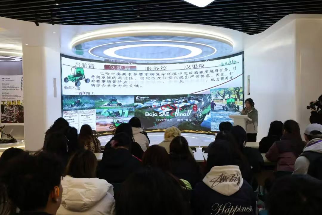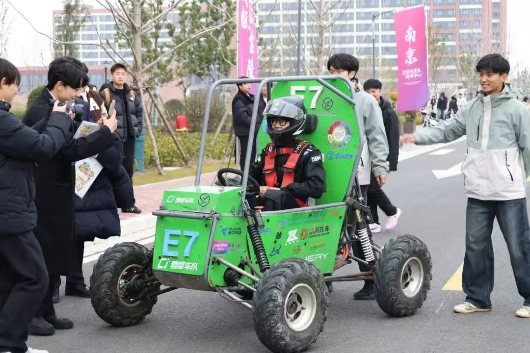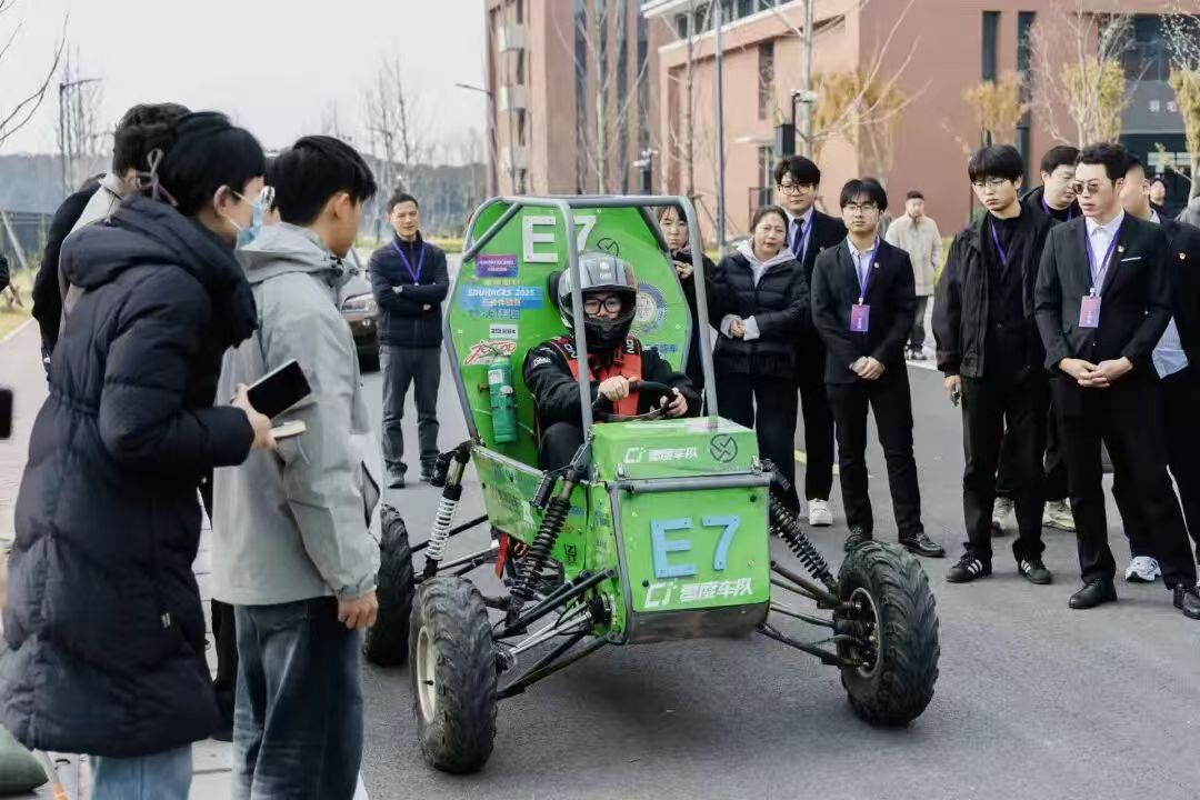 12月16日上午,武汉工程科技学院南京研学团在南京高淳全球研学中心走进EDUHACKS2025国际大学生创客马拉松大赛工作坊,开启了一场浸润着前沿科技气息的研学之旅。工作坊内,自主设计制造的氢动力节能车与电动越野赛车惊艳亮相,瞬间点燃了同学们的探索热情。团队成员作为科普向导,向同学们细致拆解设计理念与技术原理,生动解读科创背后的巧思。随后,师生们亲身试驾越野赛车,在沉浸式的实践体验中,近距离触摸科技的脉搏,真切领略到科技创新与技术实践深度融合所迸发的独特魅力。