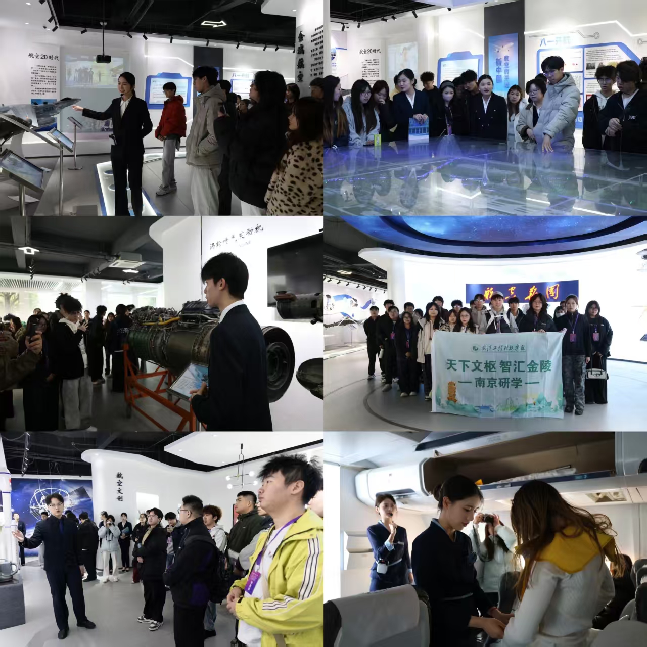 午后的探索步履不停,研学团的第二站落脚航空科技馆,一场沉浸式的航空科技研学就此展开。同学们驻足观摩精密的发动机模型、实操逼真的飞行模拟平台,航空器的工作原理不再是书本上晦涩的文字,而是眼前可触可感的机械结构与运行逻辑。踏入“金城一号”全尺寸飞机舱内,大家细致学习驾驶舱的布局设计,认真演练航空安全规范流程。这场兼具历史底蕴与实践操作的沉浸式教学,不仅让同学们清晰梳理出航空科技的发展脉络,更在心底厚植了科技报国的远大志向与使命担当。