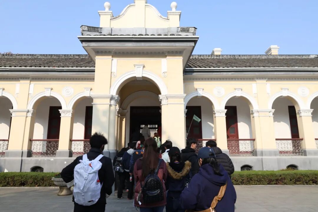 午后,南京研学团步入南京总统府。这座被誉为“行走的中国近代史教科书”的建筑群,从明清衙署到太平天国天王府邸,从民国政治中枢到时代见证者,每一重檐角、每一道门廊都叠印着厚重的历史年轮。同学们循着导游的讲解穿行其间,在陈列《南京条约》史料的展陈区前沉思民族兴衰,于孙中山先生宣誓就职处触摸共和理想的温度。研学团学子韩东样凝视砖墙感慨:“穿过一道道门,就像翻过一页页沉重的史册,每一步都踏在时代的转折点上。”大家在建筑中读懂变革的艰难,在史料陈列里体会历史选择的重量,更从百年风云的激荡中,汲取了以史为鉴、砥砺前行的智慧与力量。
